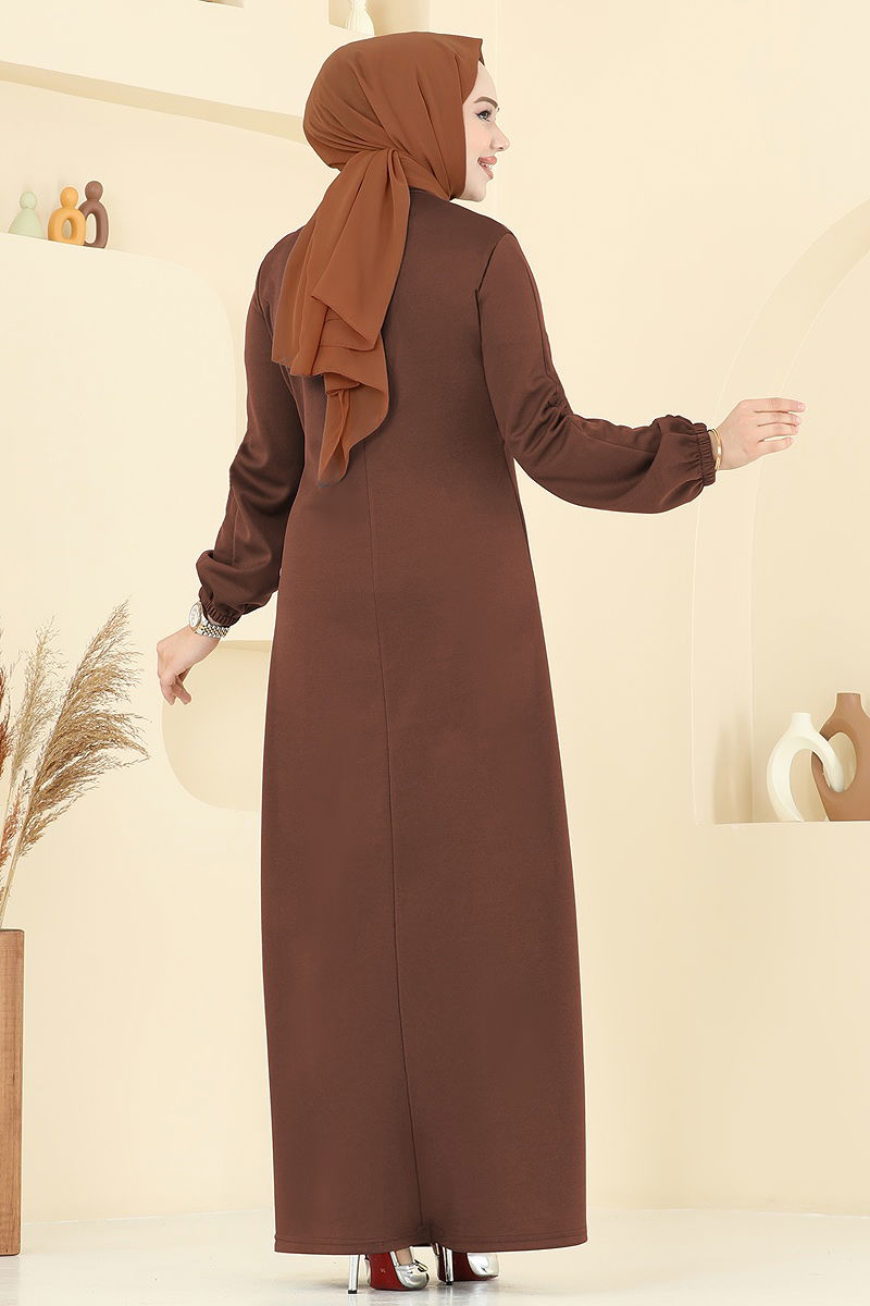 A Pileli Mira Elbise Kahve