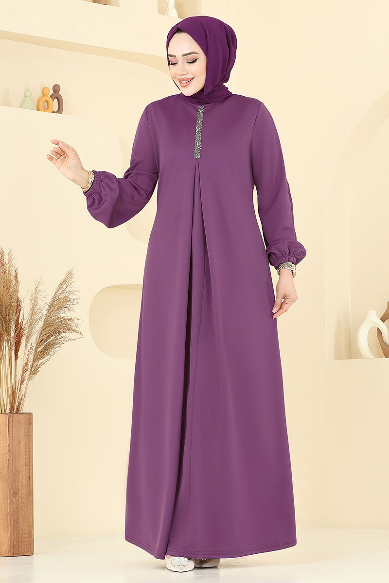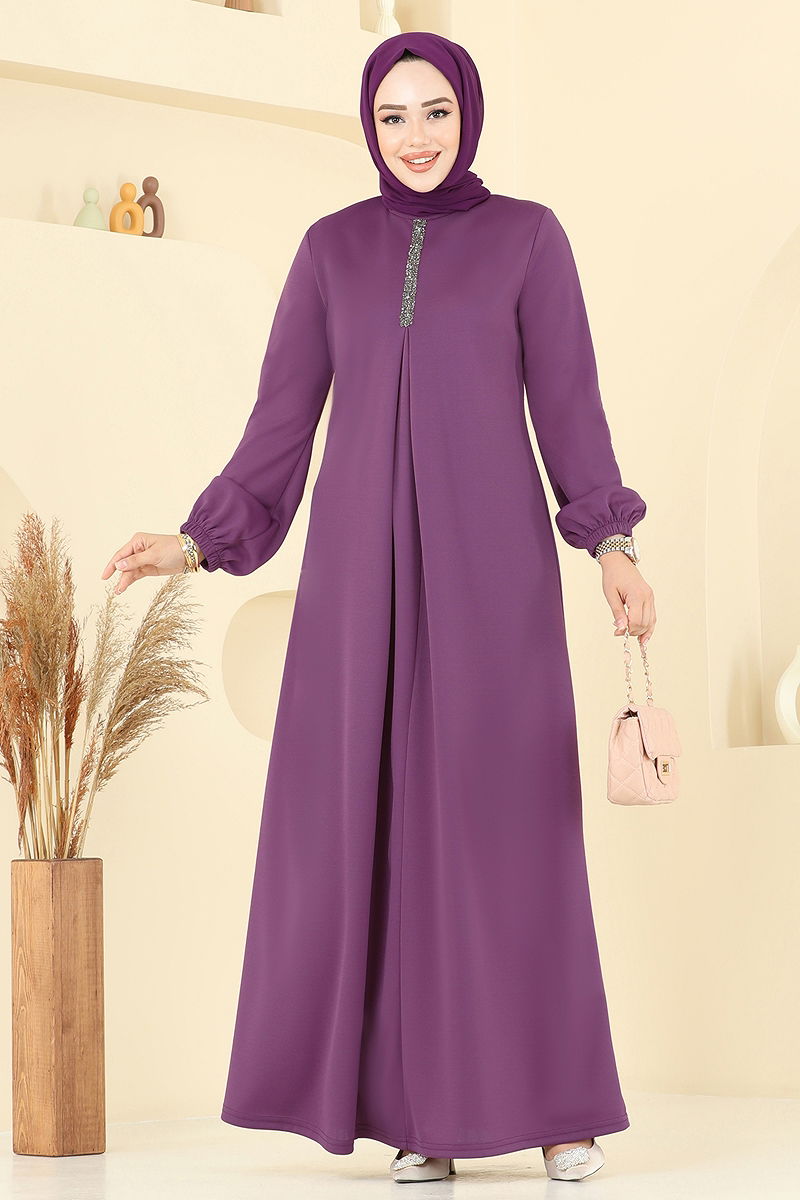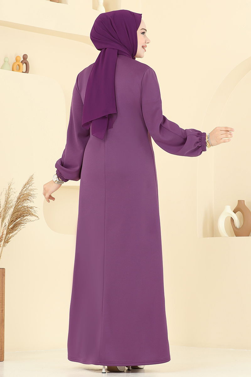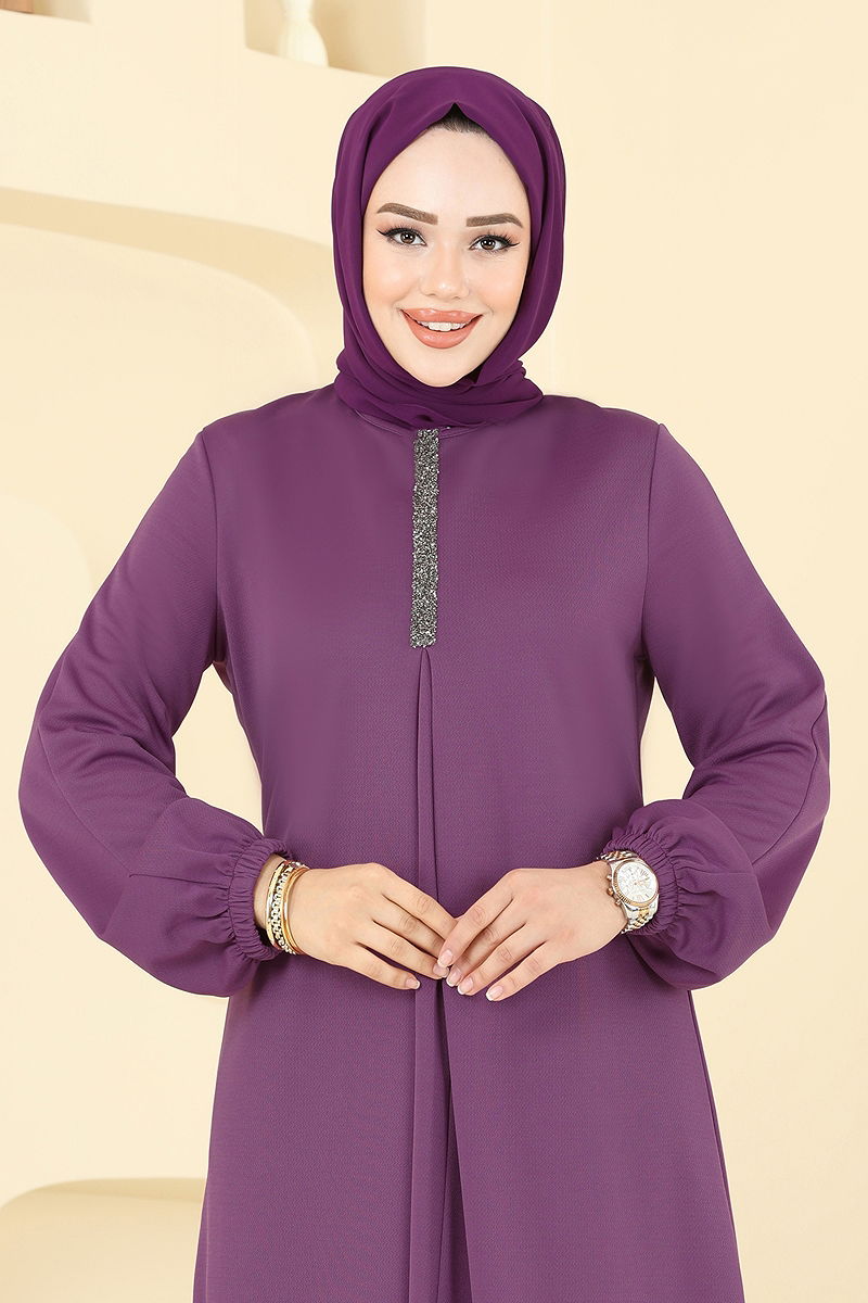 A Pileli Mira Elbise Koyu Lila
