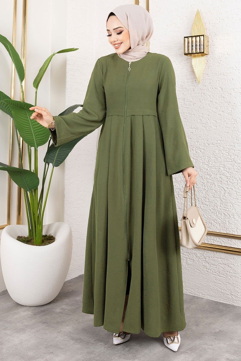 Offering both elegance and comfort, the Zip-Front Modesty Ferace can be comfortably worn in all seasons. This ferace, which can be cleaned with a gentle wash at 30 degrees, is made from breathable aerobin fabric. Its crew neck and unlined design provide a modern and practical style. The zippered front makes it easy to wear. Size of the model's garment: Height: 165 cm, Chest: 88 cm, Waist: 68 cm, Hip: 99 cm, Weight: 56 kg.