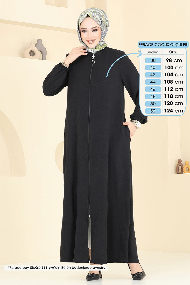 Pocket Detailed Aerobin Abaya, is an elegant choice made from aerobin fabric, suitable for all-season use. This model, which can be washed at 30 degrees with delicate care, offers practical usability. Featuring a semi-mandarin collar and elasticated cuffs, it presents a modern look, while its unlined structure provides light and comfortable wear. Accessories are not included.With its zippered design and pocketed structure, this ferace ensures you maintain your elegance in any setting.