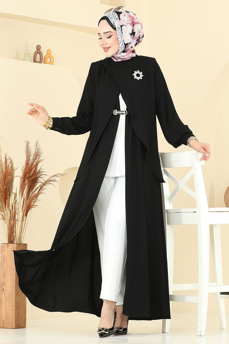 Product Feature : It is a new season hijab fashion product. The product has a Cycling collar. Unlined. The product has a zipper at the From the front part. Chiffon cape detail is sewn. Buttons are active. Belt included, optional not available. Accessories are not included. It has shoulder padding and pockets. Cuff buttons are active. There may be a tonal difference in the product due to concept photo shoots.