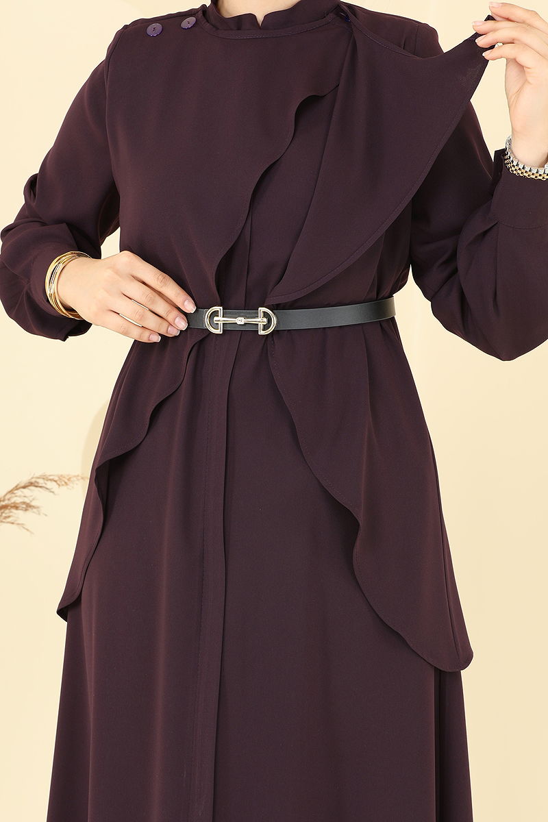 المنتج لديه ياقة دائرية. غير مبطنة. المنتج به سحاب في جزء من الأمام. رداء شيفون مخيط بتفاصيل من الشيفون. الأزرار نشطة. الحزام متضمن، ،يمكن استخدامها حسب الرغبة الملحقات غير متضمنة. يحتوي على بطانة كتف وجيوب. أزرار الكفة نشطة. قد يكون هناك اختلاف في الدرجة اللونية في المنتج بسبب التقاط الصور الفوتوغرافية.