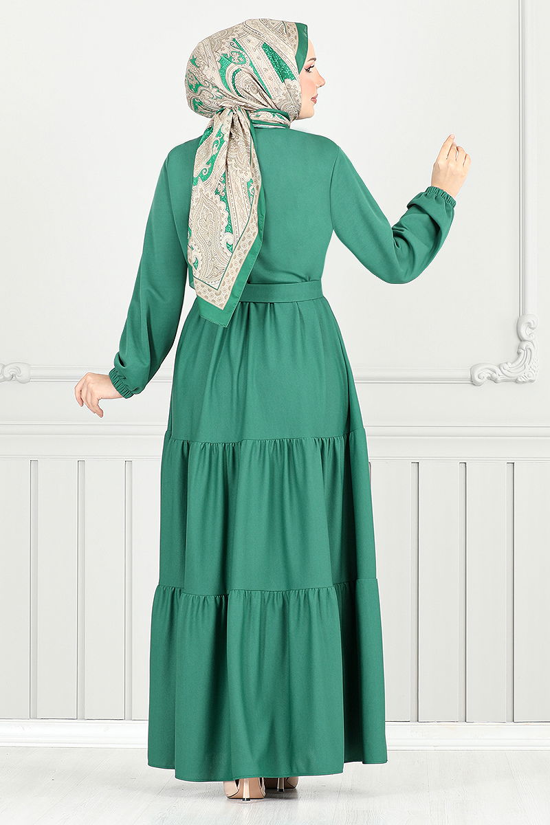 The Elastic Cuff Ferace is a modern and stylish hijab garment that can be comfortably worn in all seasons. Made from special crepe fabric, this ferace can be cleaned with a gentle wash at 30 degrees. It offers comfort with its half Mandarin collar design and unlined structure. Equipped with a zipper at the front for practical use, the ferace also features a specially sewn belt to prevent shape loss. The belt is detachable if desired. The cuffs are elastic, ensuring a fit for all sizes.