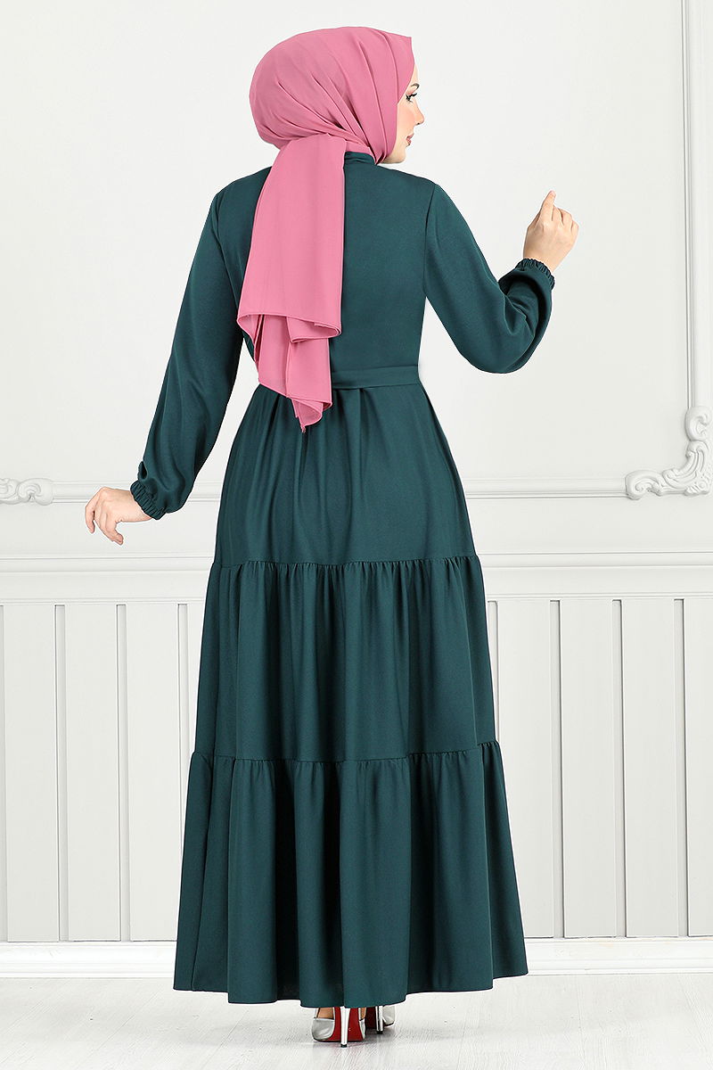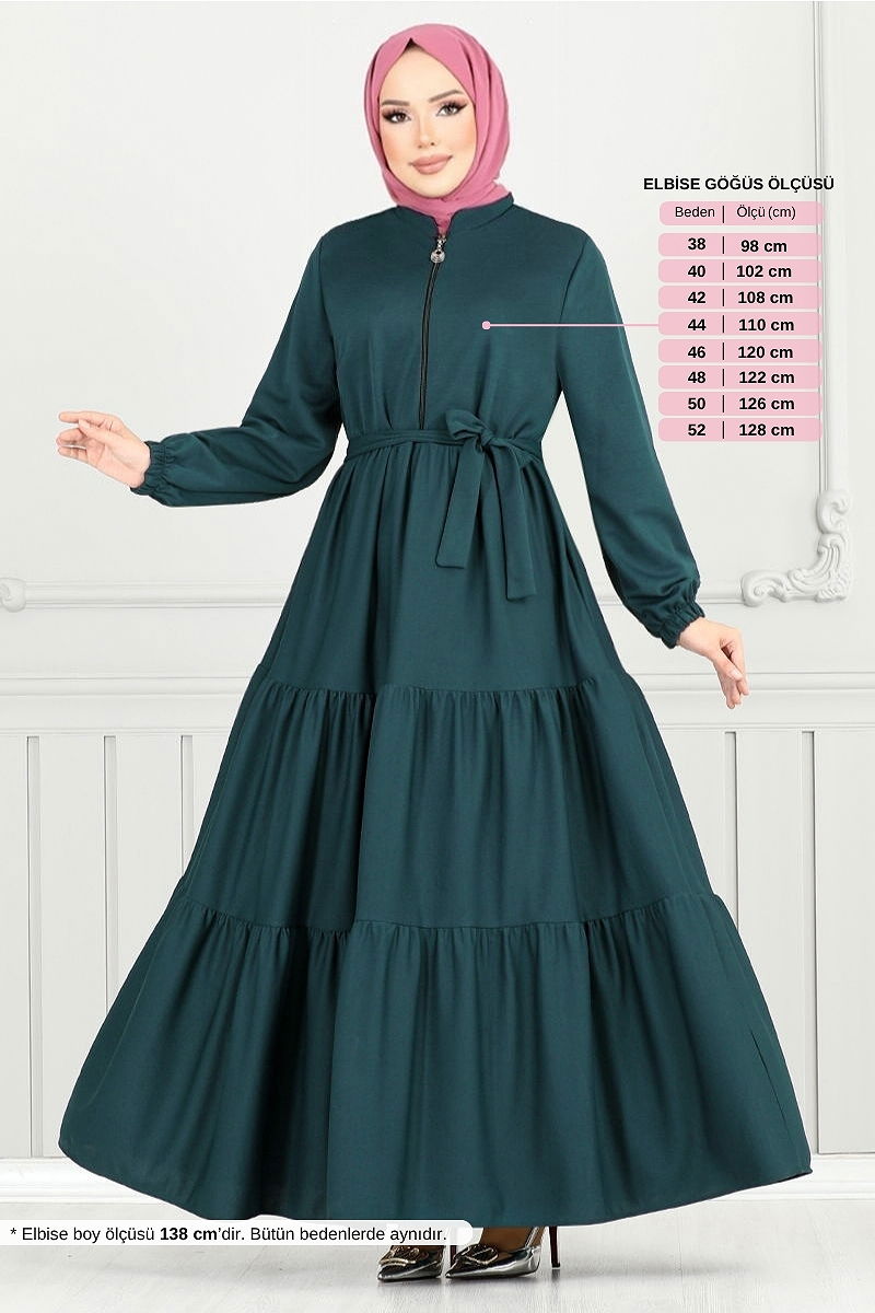 The Elastic Cuff Ferace is a modern and stylish hijab garment that can be comfortably worn in all seasons. Made from special crepe fabric, this ferace can be cleaned with a gentle wash at 30 degrees. It offers comfort with its half Mandarin collar design and unlined structure. Equipped with a zipper at the front for practical use, the ferace also features a specially sewn belt to prevent shape loss. The belt is detachable if desired. The cuffs are elastic, ensuring a fit for all sizes.