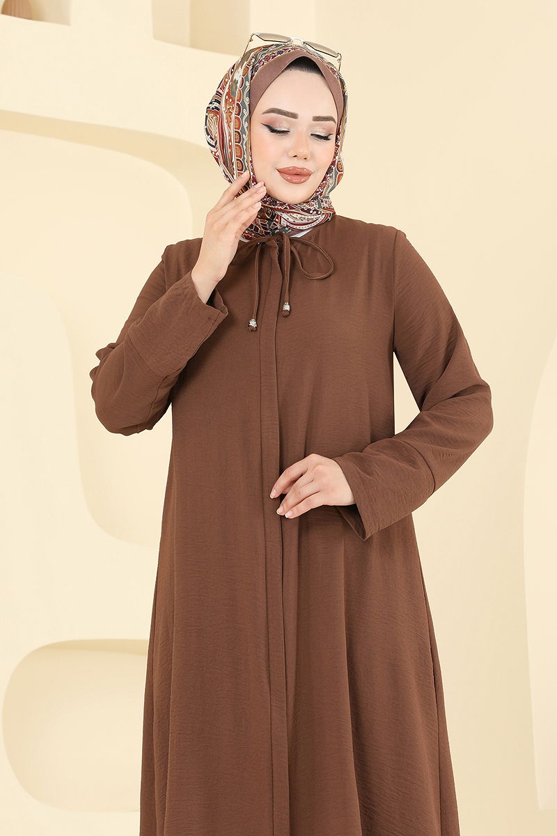 Elevate your style with the Lace Accessorized Aerobin abaya, perfect for all seasons! This ferace offers easy maintenance with a 30-degree gentle wash and is made from Aerobin fabric, which is light and breathable, ensuring comfort without compromising on style. Its crew neck and unlined design provide a contemporary look. The product has a front zipper and lace details that enhance your style with chic accessories.