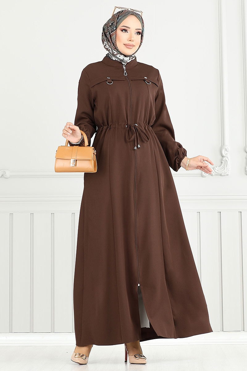 يتميز بخصر ذو أربطة. المنتج لديه ياقة نصف بيضوية. غير مبطنة. المنتج به سحاب في جزء من الأمام. الجيب متاح. السوار مطاطي. قد يكون هناك اختلاف في الدرجة اللونية في المنتج بسبب التقاط الصور الفوتوغرافية.