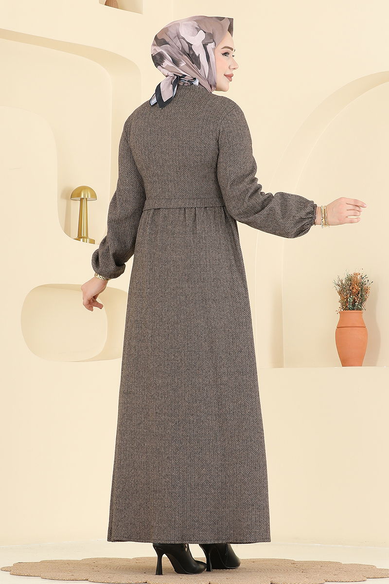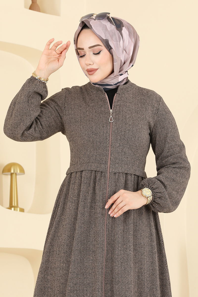 Stand out with the elegant stitched waist details of the Fishbone Ferace, adding style to your autumn and winter seasons. Easily washable at 30 degrees with gentle cycle, this ferace features an eye-catching fishbone-patterned fabric. It combines comfort and style with its crew neck and elasticated cuffs. Designed with a front zipper for practical use, and its unlined structure prioritizes lightness. Ideal for those looking for chic and modern modest wear.