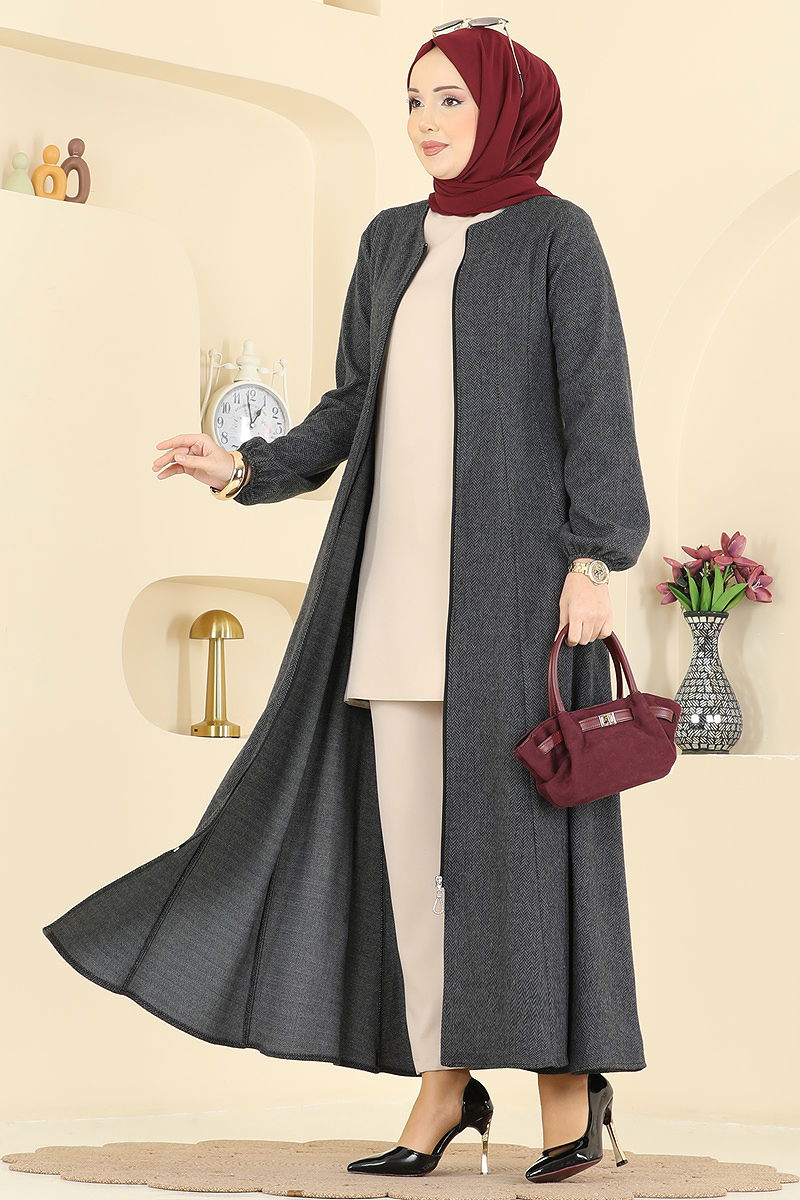 Designed for fall and winter, the Zip-Front Herringbone Ferace not only ensures your stylish look but also emphasizes comfort with its herringbone fabric and crew neck design. Featuring a front zipper for easy wear, elastic-cuffed sleeves add to its convenience while a hidden pocket offers practicality. This ferace can be washed delicately at 30 degrees Celsius, providing both functionality and elegance.