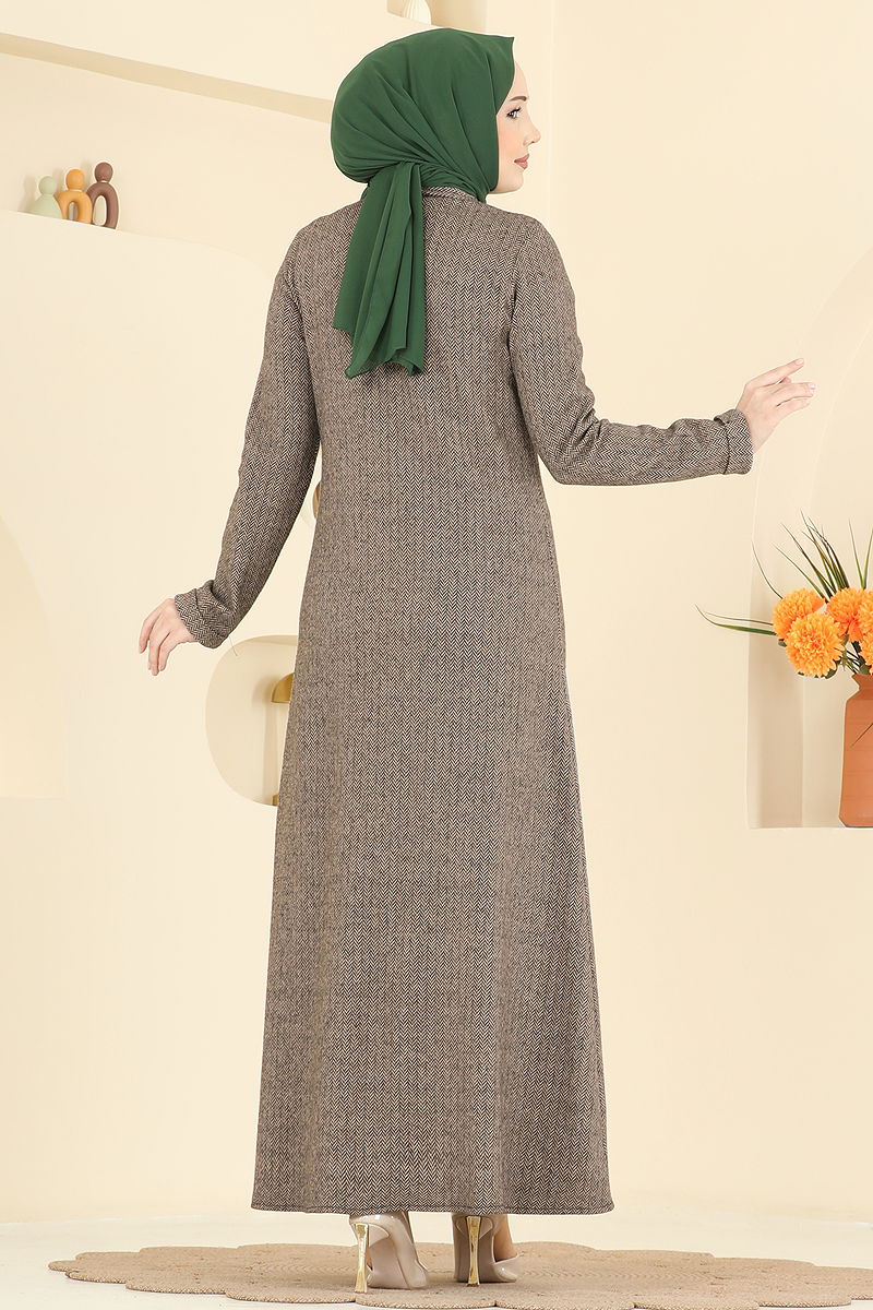 The Front Buttoned Herringbone Ferace combines elegance and comfort, making it a standout in modest fashion. Suitable for all seasons, this item should be washed at 30 degrees on a gentle cycle. Made from herringbone fabric, it is perfect for style-conscious women. The shirt collar and front buttons blend classic and modern lines, while the adjustable tie at the side accommodates various sizes.