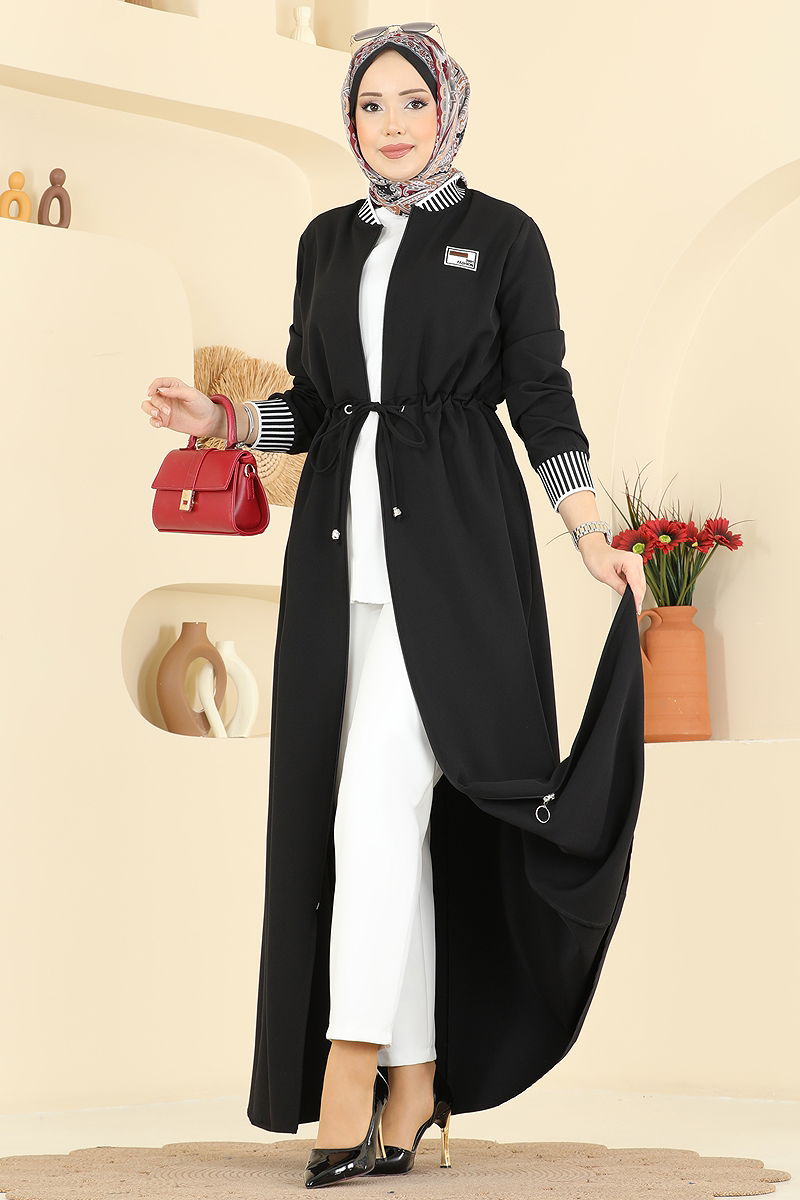 The Ribbed Detail Dabıl is an essential piece for your modest wear collection. Suitable for all-season wear, this ferace can be delicately washed at 30 degrees. Made from high-quality woven Dabıl fabric, it features a semi-mandarin collar and is unlined for comfort. It adds functionality with its convenient front zipper and hidden pocket detail. Moreover, the drawstring waist design provides a modern and stylish look. (The product worn by the model is size 38.)
