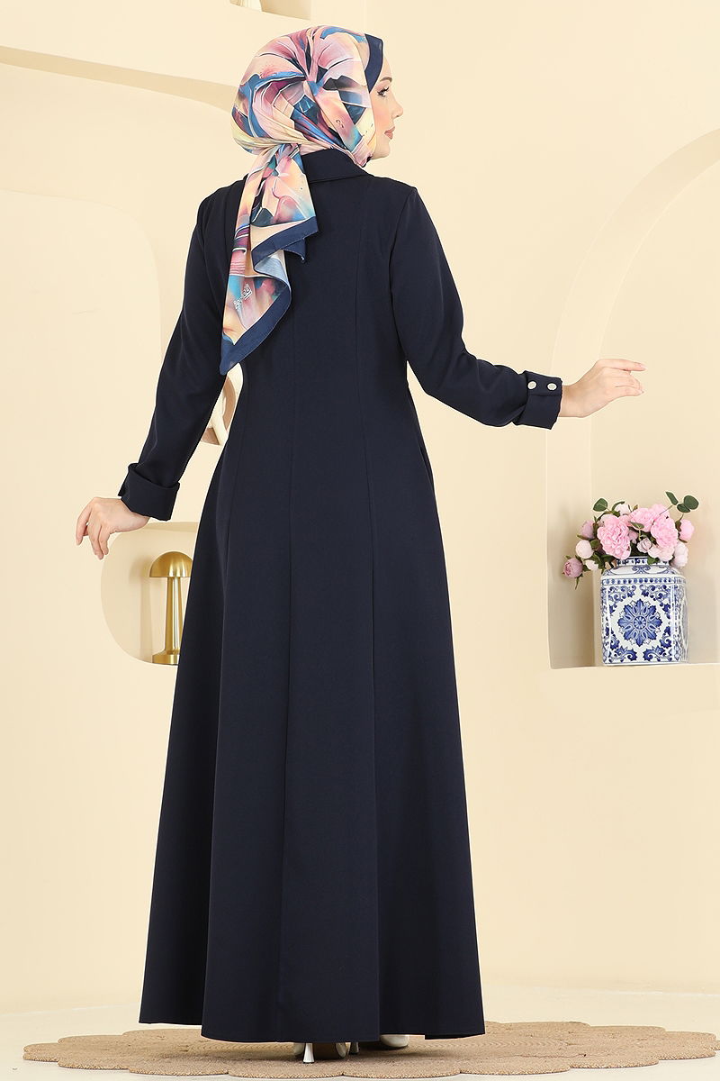 The Jacket Collar Dabıl Ferace is a modest clothing item suitable for all seasons. It can be washed at 30 degrees on a gentle cycle and is made from durable Dabıl fabric. The jacket collar adds a touch of elegance, while its lining-free design ensures lightness and comfort. Conveniently designed with a front zipper and hidden pocket details, it also features snap and buckle details that enhance its style. The product includes a sewn-in belt, offering a modern and chic silhouette.