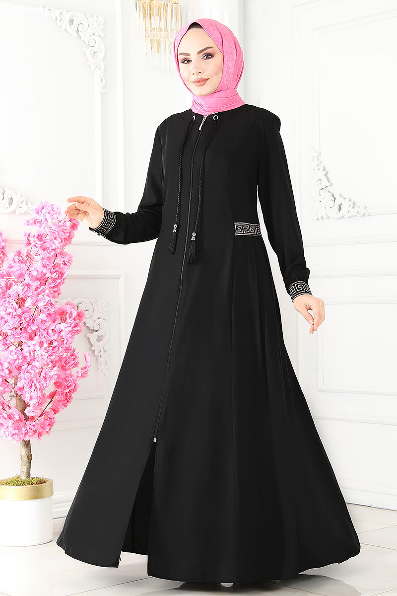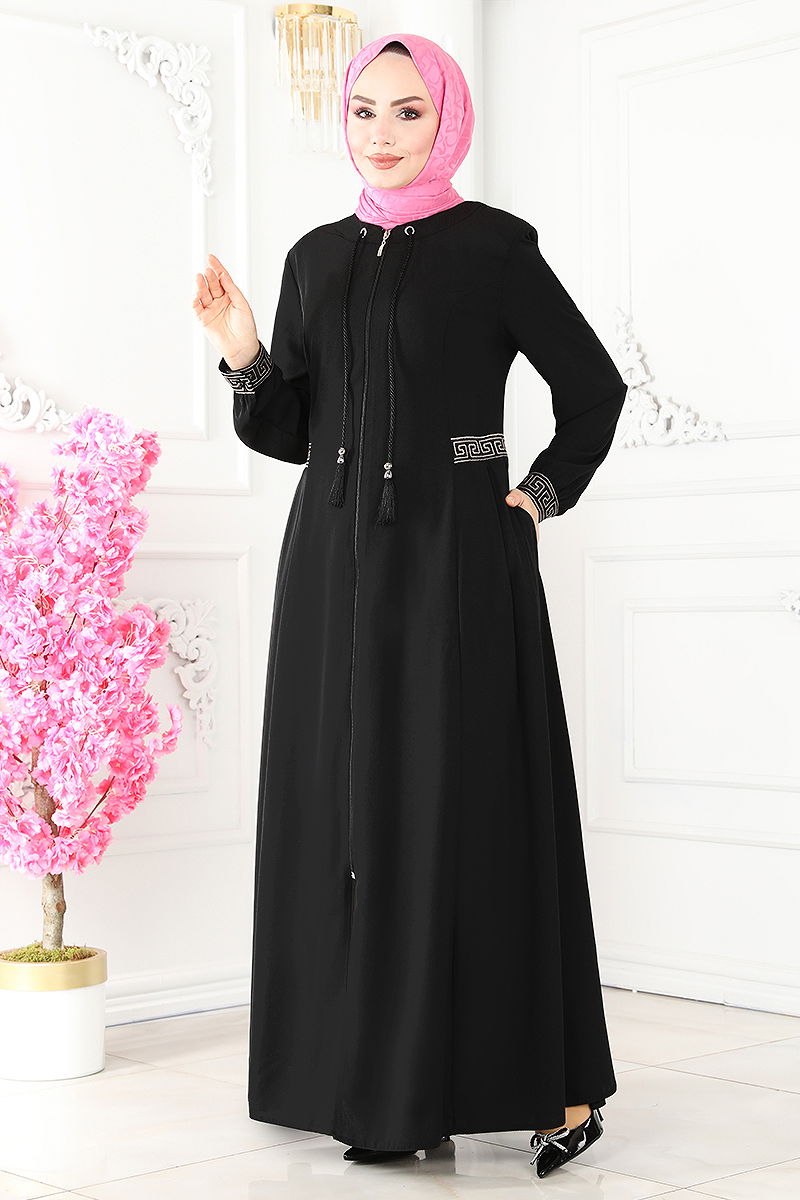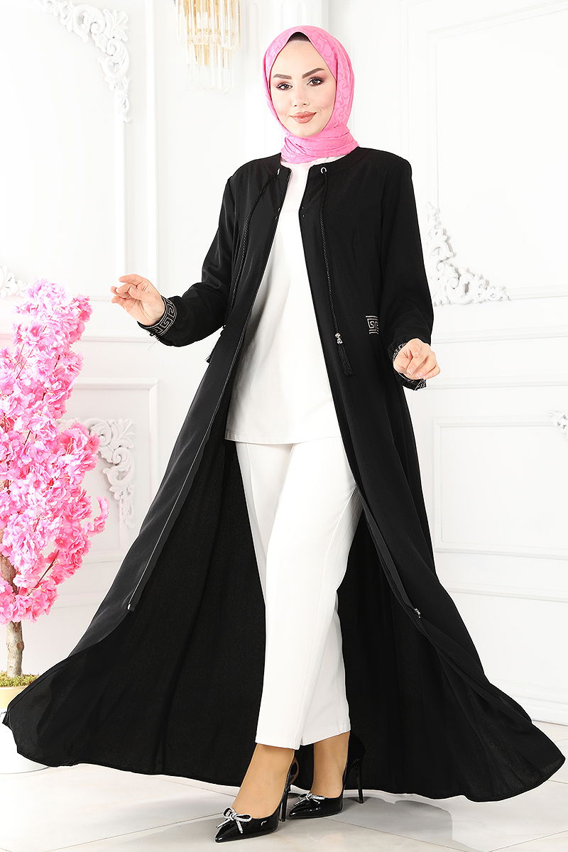 Fabric Property: Made of Medina silk fabric.It is a fabric that can be used in all seasons.Product Feature :It is a new season hijab style product. (Unlined.)Cycling Collar.It has a functional front zipper.Tied collar.There may be a tonal difference in the product color due to the concept shots.