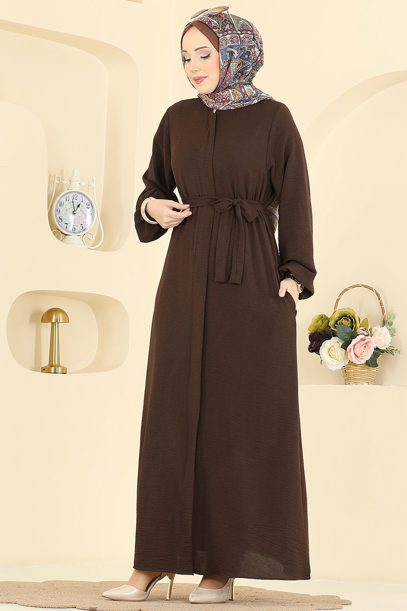 المنتج لديه ياقة نصف بيضوية. غير مبطنة. المنتج به سحاب في جزء من الأمام. الحزام متضمن، ،يمكن استخدامها حسب الرغبة الجيب متاح. السوار مطاطي. قد يكون هناك اختلاف في الدرجة اللونية في المنتج بسبب التقاط الصور الفوتوغرافية.