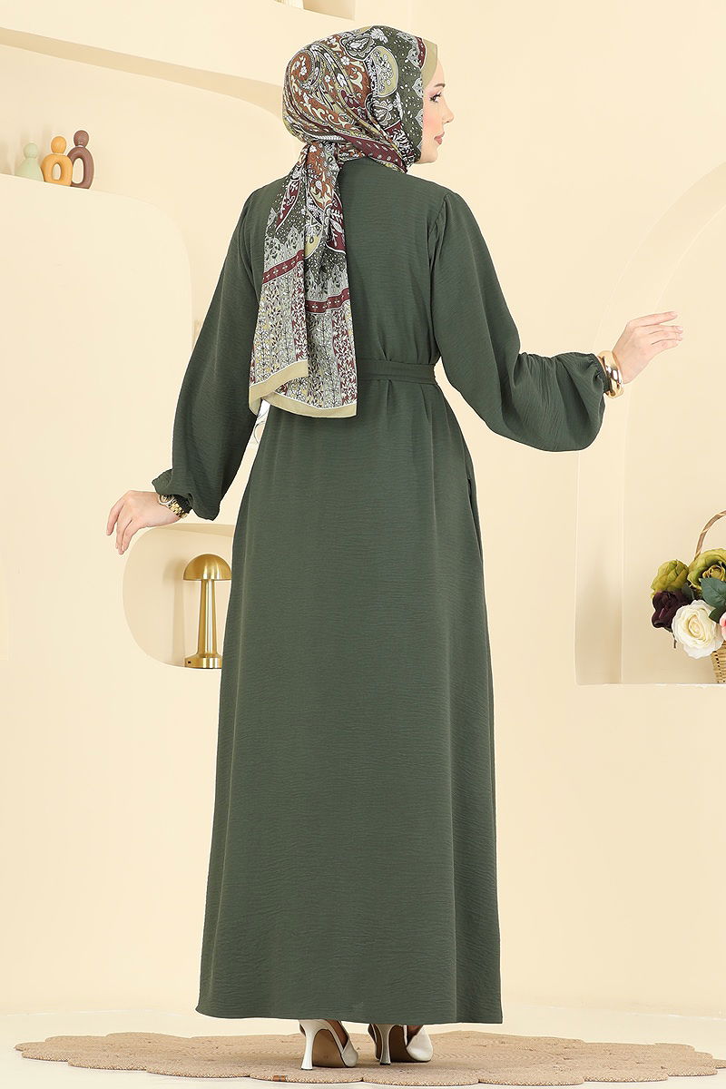 المنتج لديه ياقة نصف بيضوية. غير مبطنة. المنتج به سحاب في جزء من الأمام. الحزام متضمن، ،يمكن استخدامها حسب الرغبة الجيب متاح. السوار مطاطي. قد يكون هناك اختلاف في الدرجة اللونية في المنتج بسبب التقاط الصور الفوتوغرافية.