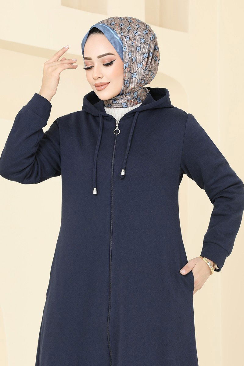 Front Zip Tivit Overcoat is a modest fashion product that can be used in autumn and winter seasons. It is washable at 30 degrees without squeezing (delicate wash). It is tivit fabric. The product has a hooded collar and is unlined. The product has a front zipper (The product on the model is size 38.) It has pockets.