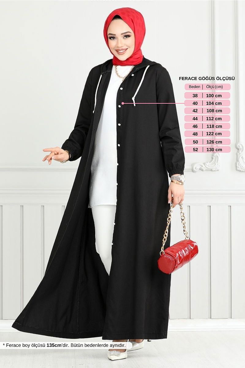 Elegant and stylish, the Elastic Cuffed Denim Ferace is an ideal modest wear piece that can be enjoyed in all seasons. It can be washed at 30 degrees on a gentle cycle, offering the comfort and durability of tensel denim fabric. Its hooded design and front button closure make it practical for everyday use. The elastic cuffs allow for ease of movement, maintaining elegance without compromising on comfort. The unlined structure provides a light and airy experience.