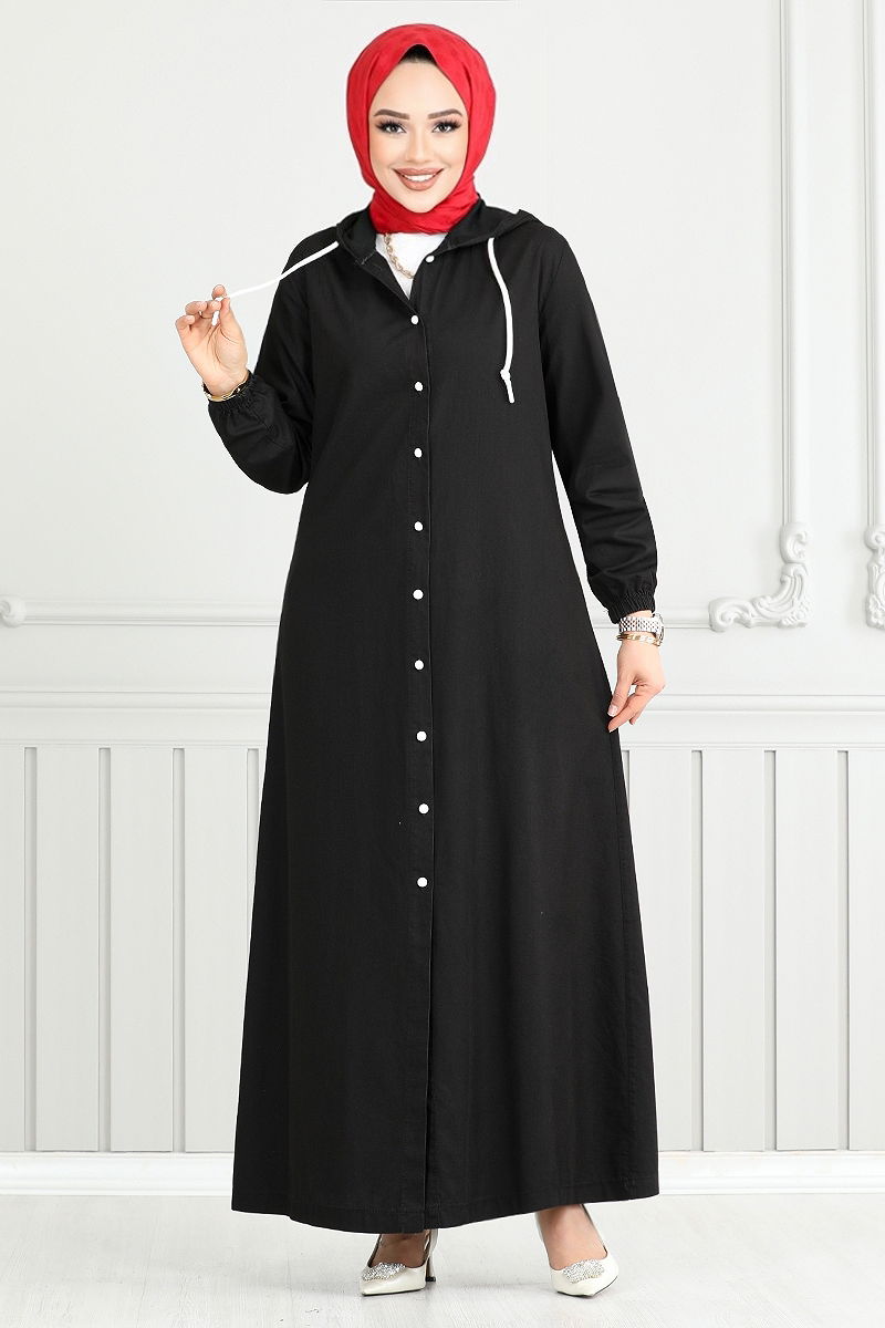 Product Feature : It is a new season hijab fashion product. The product has a Hooded collar. The product has From the front buttons. Unlined. The hood is sewn to the product. The cuff is rubberized. There may be a tonal difference in the product due to concept photo shoots.