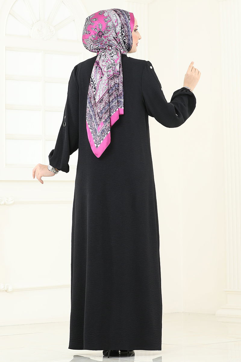 With its innovative design, the Zip Front Abaya Overgarment is comfortable to wear in all four seasons. Ideal for delicate clothes, this product can be washed at 30 degrees and is durable due to its aerobin fabric structure. The semi-mandarin collar design emphasizes elegance, while its lining-free structure offers lightness and comfort. It provides practical use with its zippered pocket and elasticated cuffs. This modern abaya is poised to become a staple in every wardrobe.