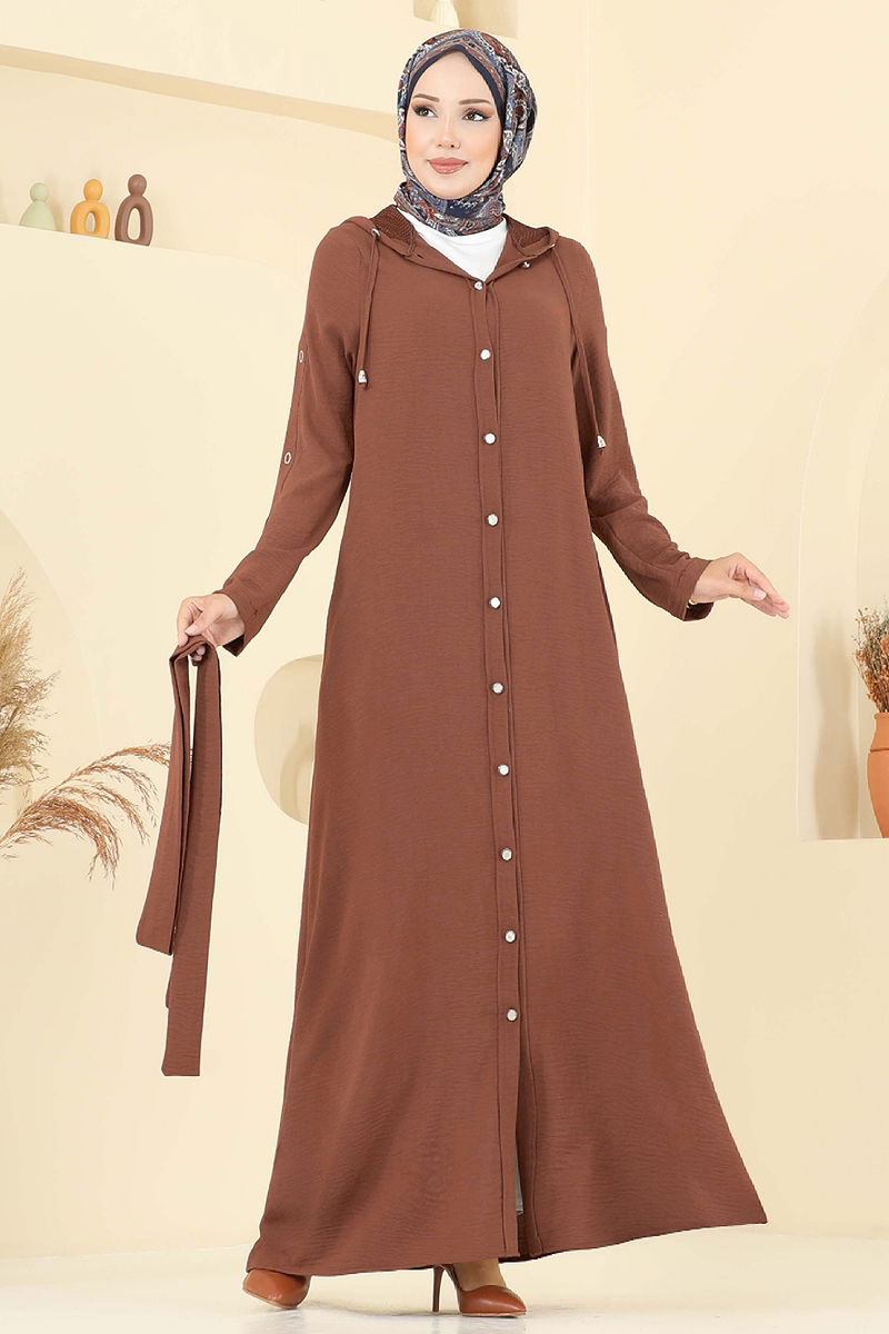 Product Feature : It is a new season hijab fashion product. My pocket knife has a bird’s eye rivet. The product has From the front buttons. Unlined. The hood is sewn to the product.The inside of the hood has mesh detail. Belt included, optional not available. There may be a tonal difference in the product due to concept photo shoots.