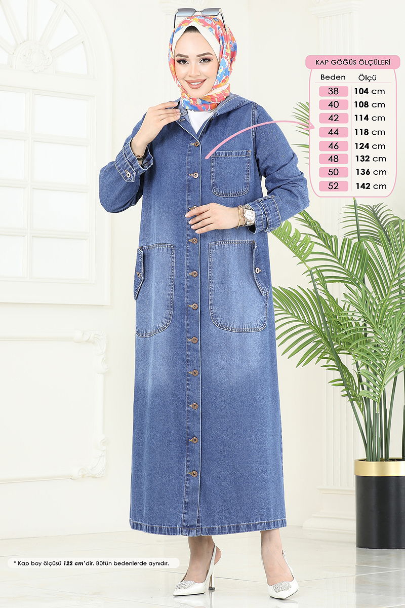 Stylish and functional, the Pocket Detail Denim Cape offers comfort across all seasons. Made from delicate denim fabric, it promises longevity with care instructions for washing at 30 degrees on a gentle cycle. The hooded design and front button closure provide practicality, while its unlined structure offers lightness and comfort. Side pockets add extra convenience. This piece is an ideal finish to your modest fashion ensemble with a modern touch.
