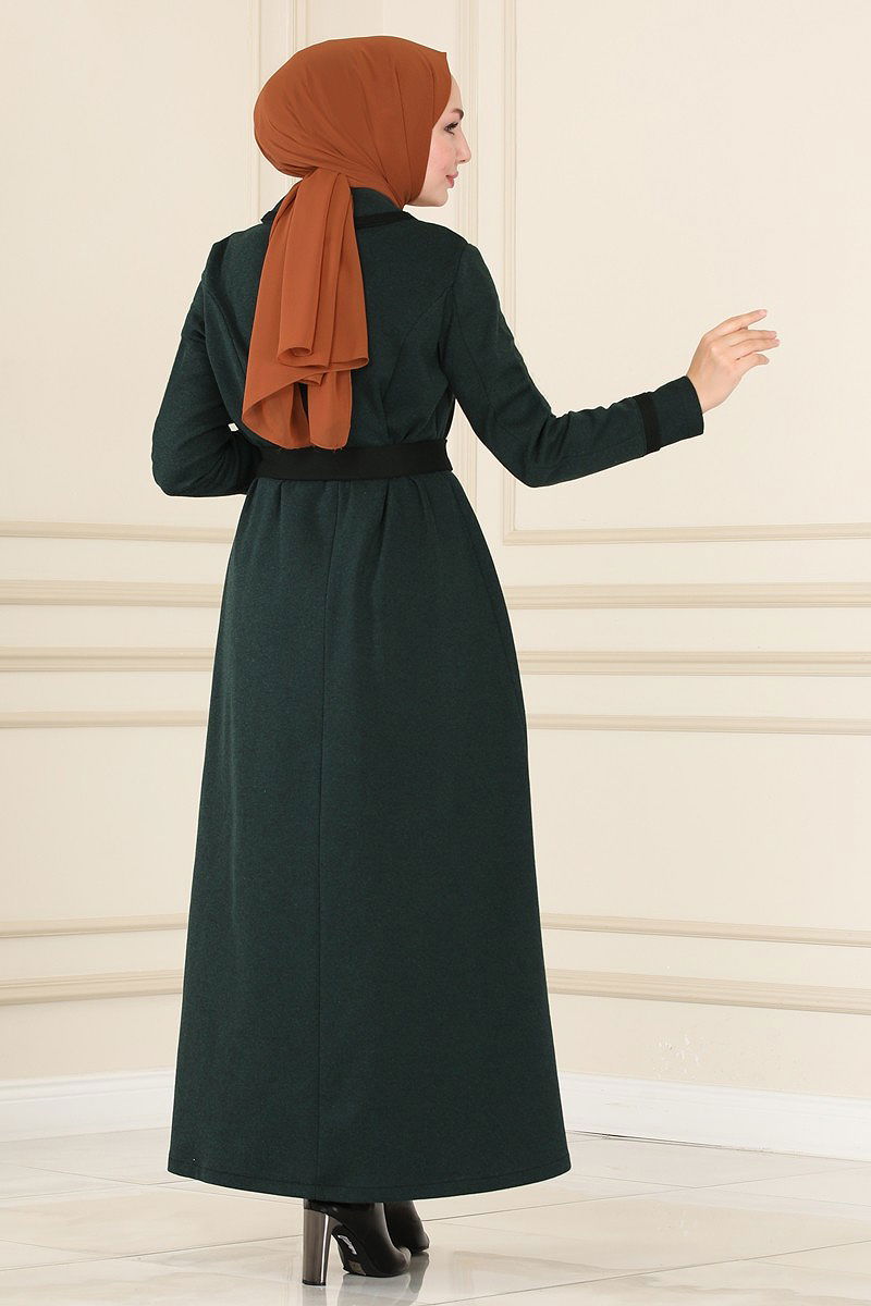Fabric Property: Made of tweed fabric.It is a fabric that can be used in the winter season.Product Feature :It is a new season hijab style product. (Unlined.)It has a functional buttons.Belt is included, can be used optionally.Has pockets.There may be a tonal difference in the product color due to the concept shots.