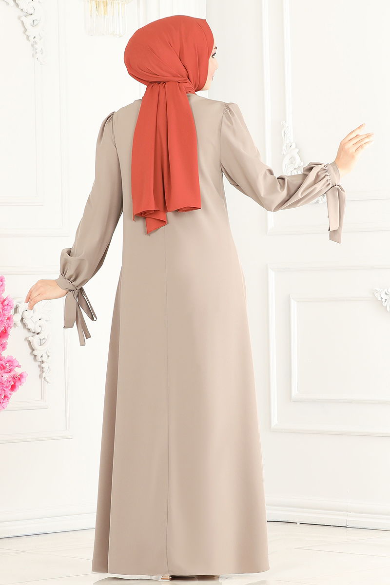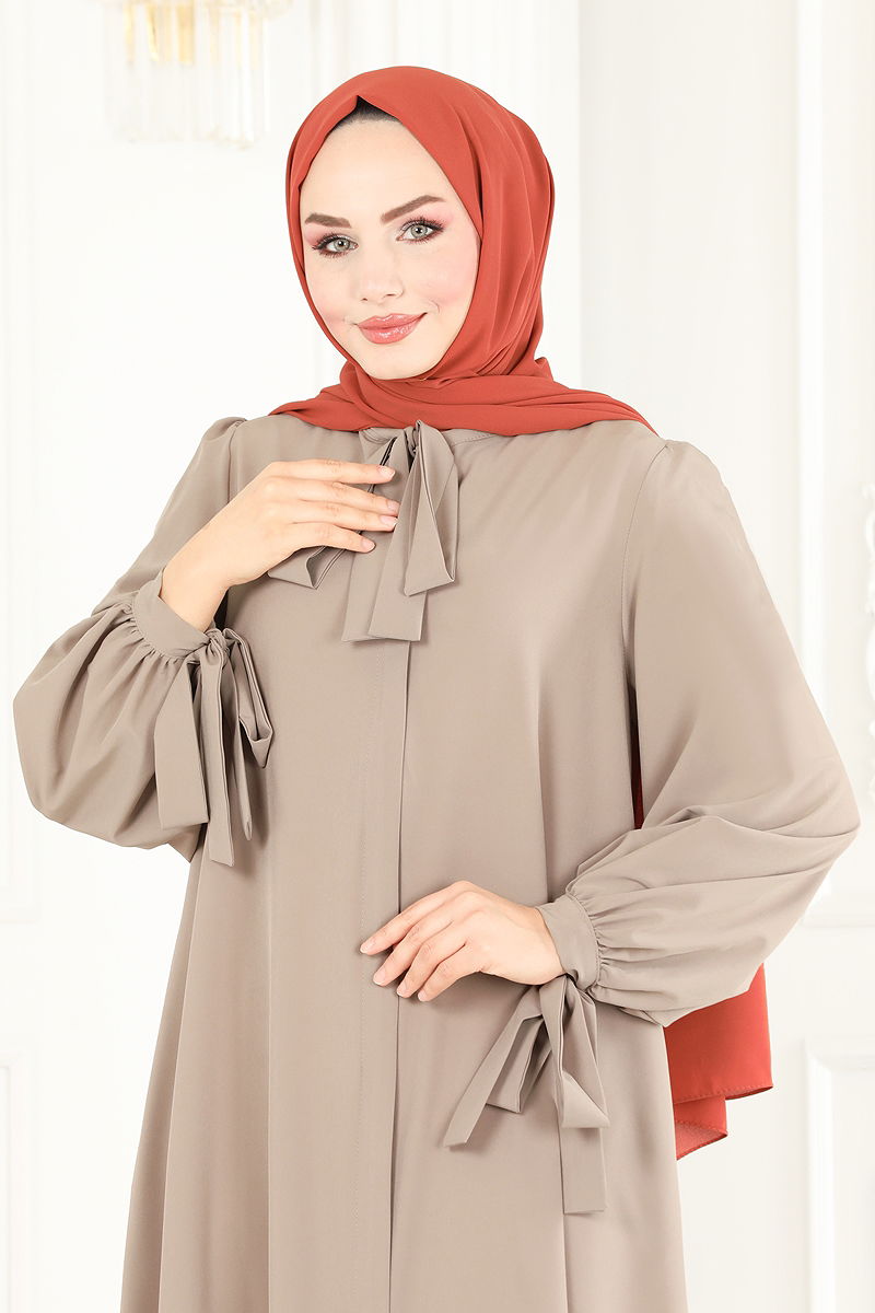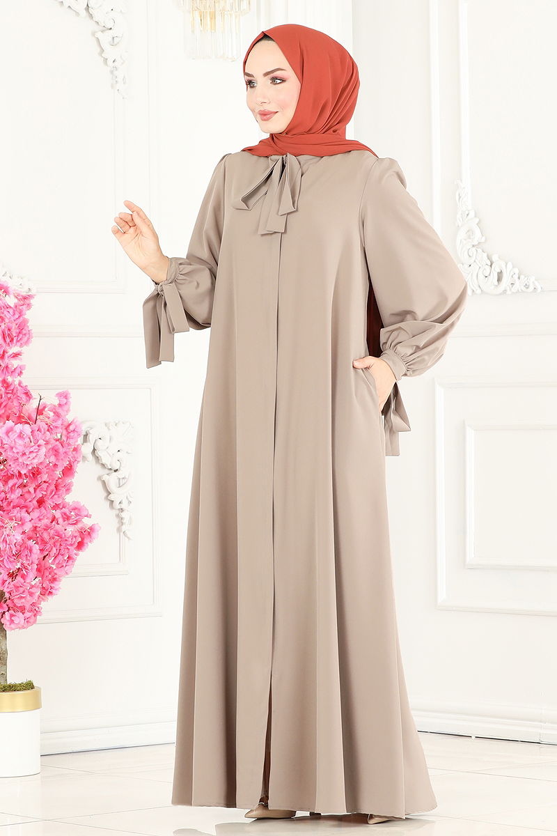 Fabric Property: Made of crepe fabric.It is a fabric that can be used in all seasons.Product Feature :It is a new season hijab style product. (Unlined.)It is scarf collar.It has a functional front zipper.Has pockets.There may be a tonal difference in the product color due to the concept shots.