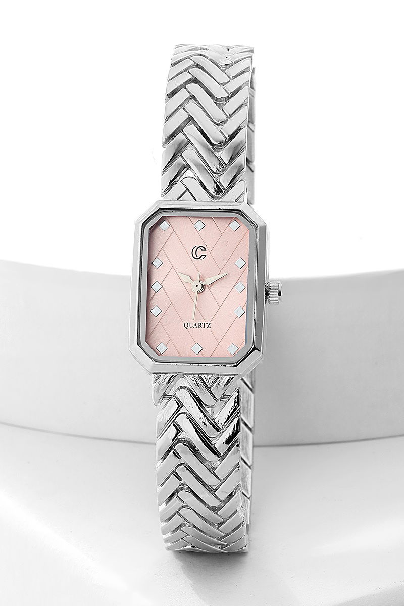 Product Name: Chain Patterned Metal Watch ACCESSORY, is a modest fashion item. Case Diameter: 26-30 mm. Case Material: Metal. Band Material: Metal. Mechanism: Quartz. Waterproof: 0 ATM