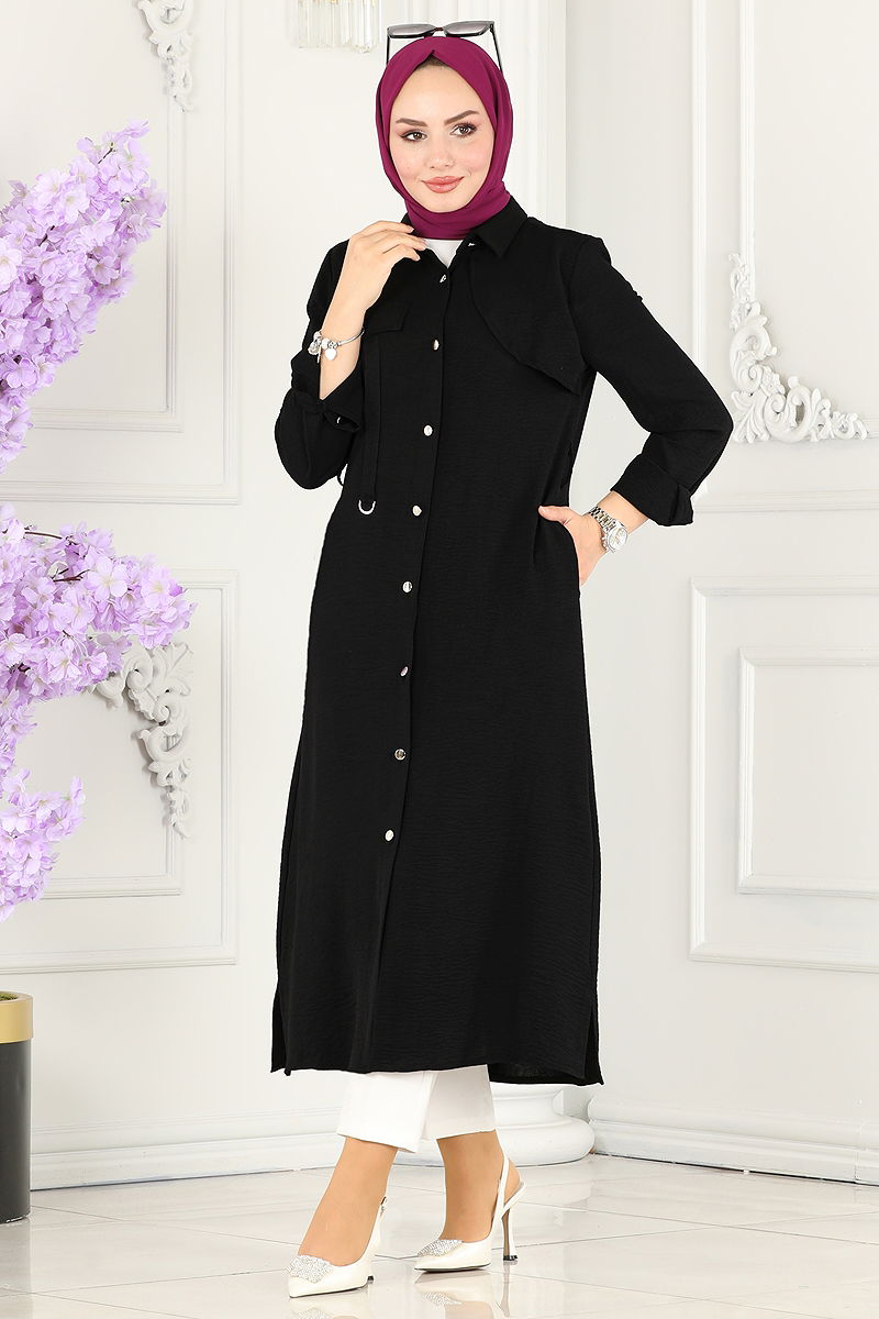 المنتج لديه ياقة القميص. المنتج به أزرار من الأمام. غير مبطنة. الحزام متضمن، ،يمكن استخدامها حسب الرغبة قد يكون هناك اختلاف في الدرجة اللونية في المنتج بسبب التقاط الصور الفوتوغرافية.