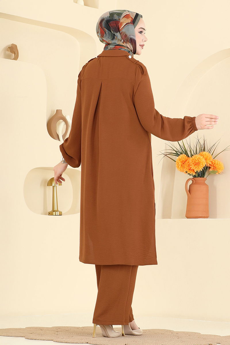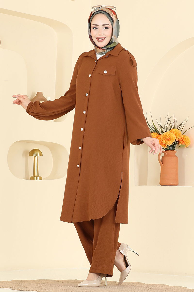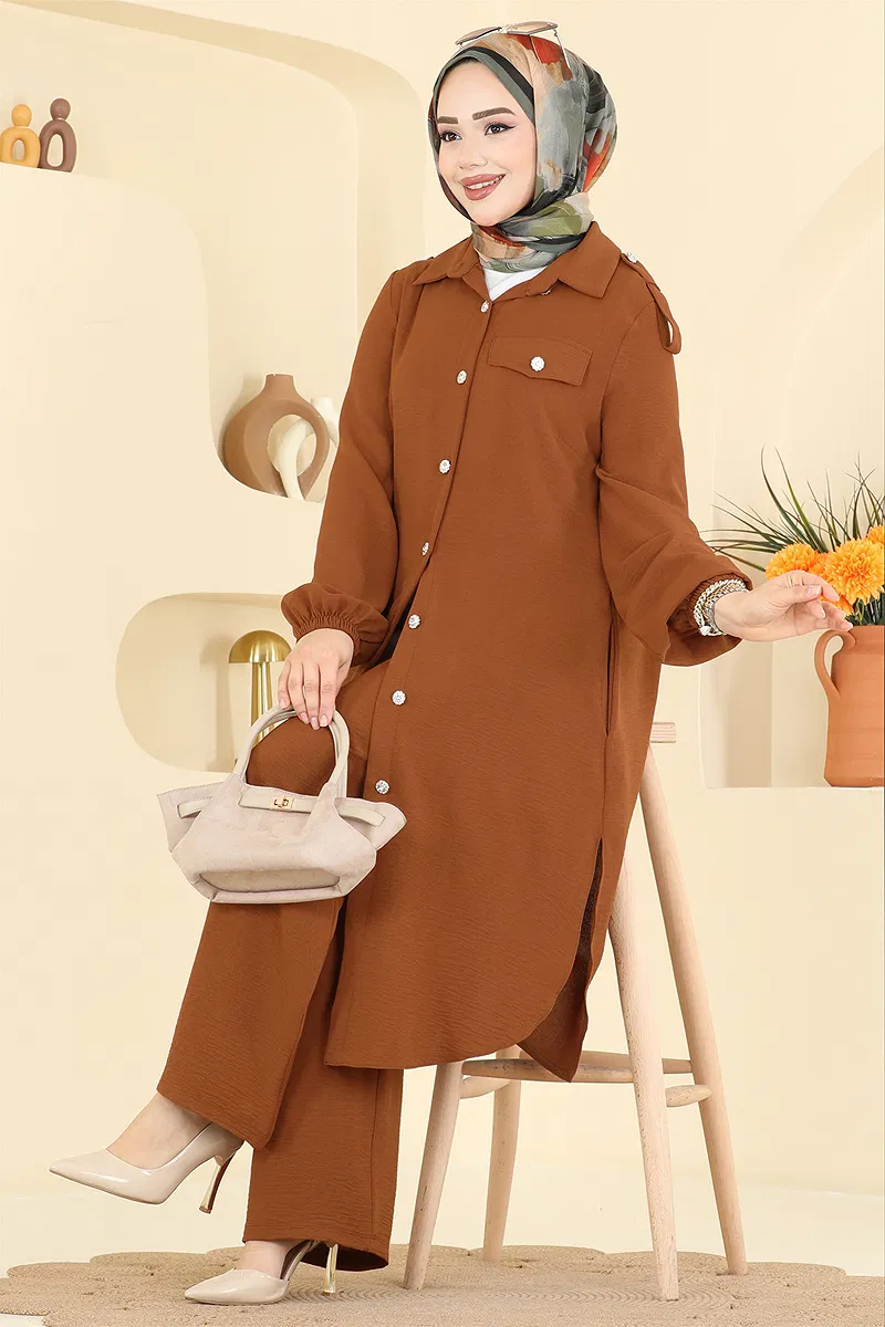 Ürün Özelliği : Yeni sezon tesettür moda ürünüdür. Ürün Gömlek yakadır. Ürün Önden düğmelidir. Tunik yandan yırtmaçlıdır.. Astarsızdır. Cep detayı aksesuardır. Pantolon beli lastiklidir. Manşet lastiklidir.Konsept fotoğraf çekimlerinden dolayı üründe ton farklılığı olabilir.