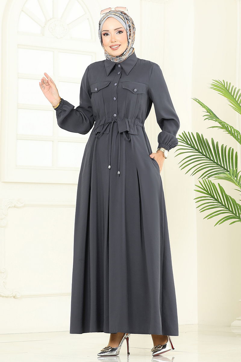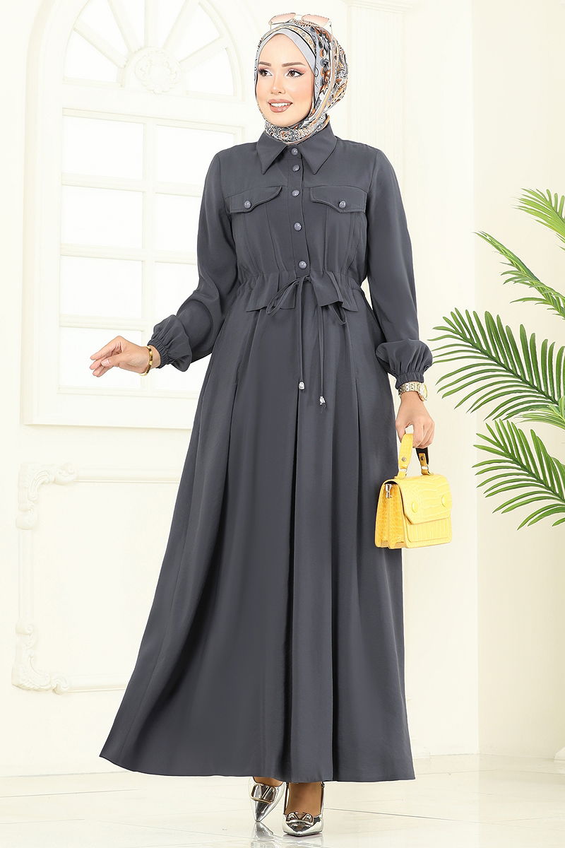 Aksesuar Cepli Modal Elbise Antrasit