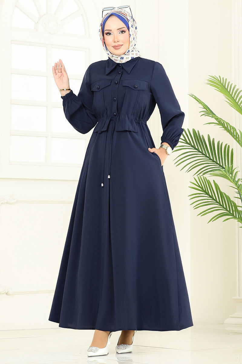 Aksesuar Cepli Modal Elbise, şıklığınızı dört mevsim korumanız için tasarlanmış bir tesettür ürünüdür. Hassas yapısıyla 30 derecede yıkanabilen bu elbise, modal kumaştan üretilmiştir. Gömlek yaka tasarımı ve önden yarım düğmeli yapısı ile pratik bir kullanım sunar. Astarsız olan bu model, rahat bir oturuş için beli bağcıklı ve dikişli tasarıma sahiptir. Ürüne dahil olan kemer, iki ucu sabitlenmiş şekilde tasarlanmış, böylece dalgalanmayı önlemiştir. Kemer isteğe bağlı olarak çıkarılabilir. Elbisenin manşetleri lastikli olup, cep detayı ise tasarıma modern bir aksesuar katmaktadır.