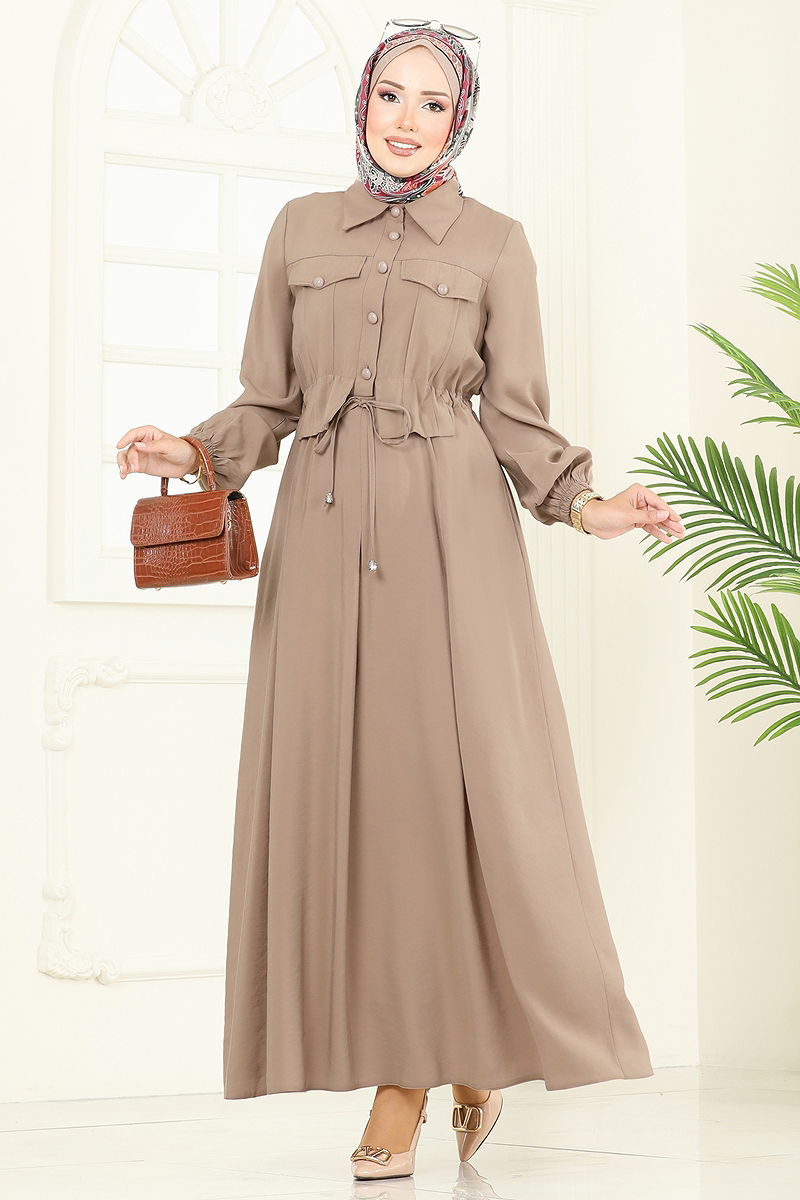 Ürün Özelliği : Yeni sezon tesettür moda ürünüdür. Beli bağcıklıdır. Ürün Gömlek yakadır. Ürün Önden kullanılabilir yarım düğmelidir. Astarsızdır. Ürün beli dikişlidir. Kemer ürüne dahildir, isteğe bağlı kullanılmayabilir. Cep detayı aksesuardır. Manşet lastiklidir. Konsept fotoğraf çekimlerinden dolayı üründe ton farklılığı olabilir.
