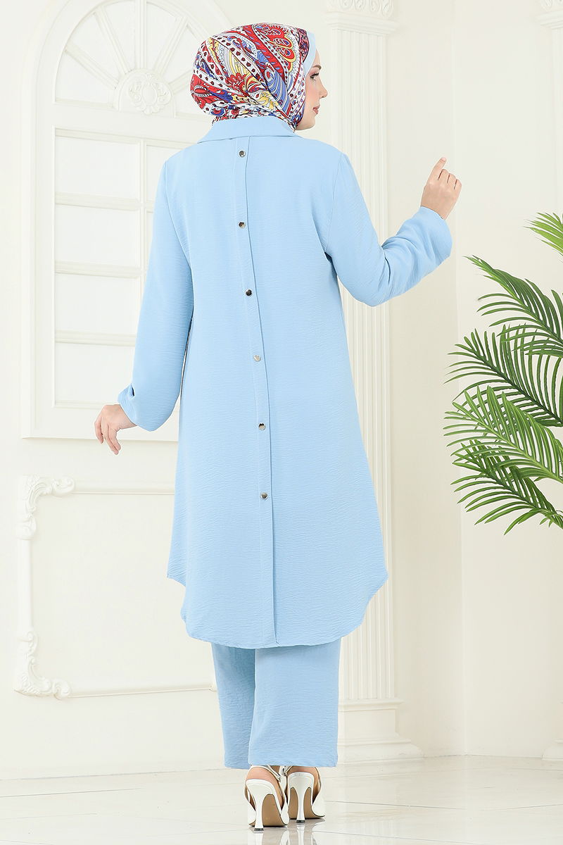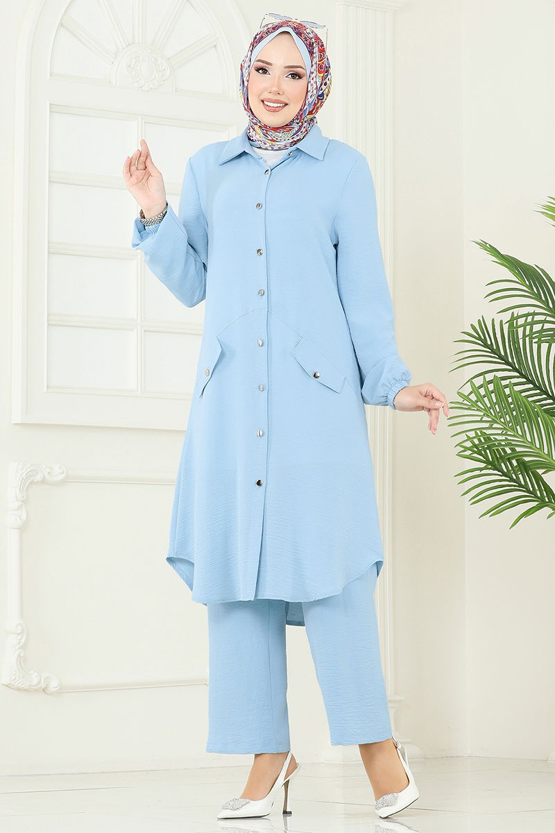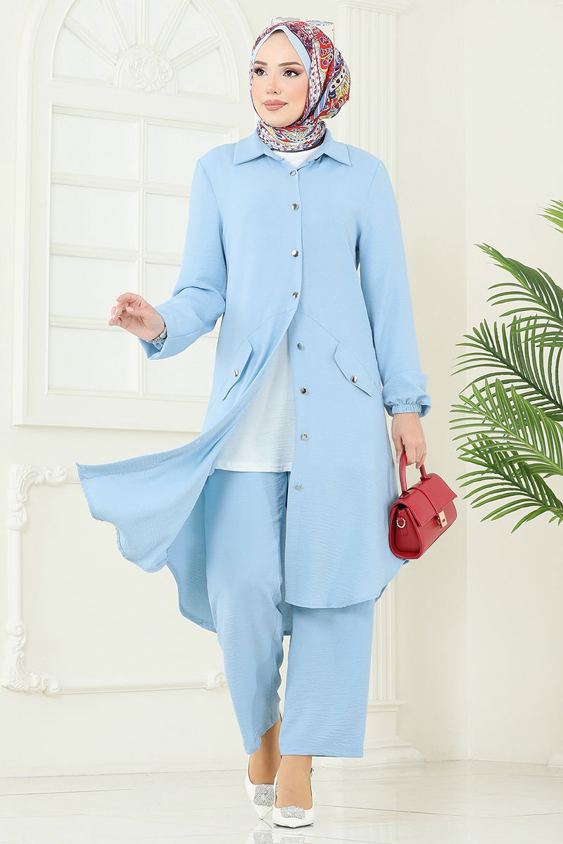 Ürün Özelliği : Yeni sezon tesettür moda ürünüdür. İç tunik Sırttan kullanılabilir bir düğmesi bulunmaktadır. Ürün Gömlek yakadır. Ürün Önden düğmelidir. Yırtmaç düğmeleri aksesuardır.. Astarsızdır. Desen detayları baskıdır. İç tunik uzun kolludur. Cep detayı aksesuardır. Pantolon beli lastiklidir. Manşet lastiklidir. Konsept fotoğraf çekimlerinden dolayı üründe ton farklılığı olabilir.