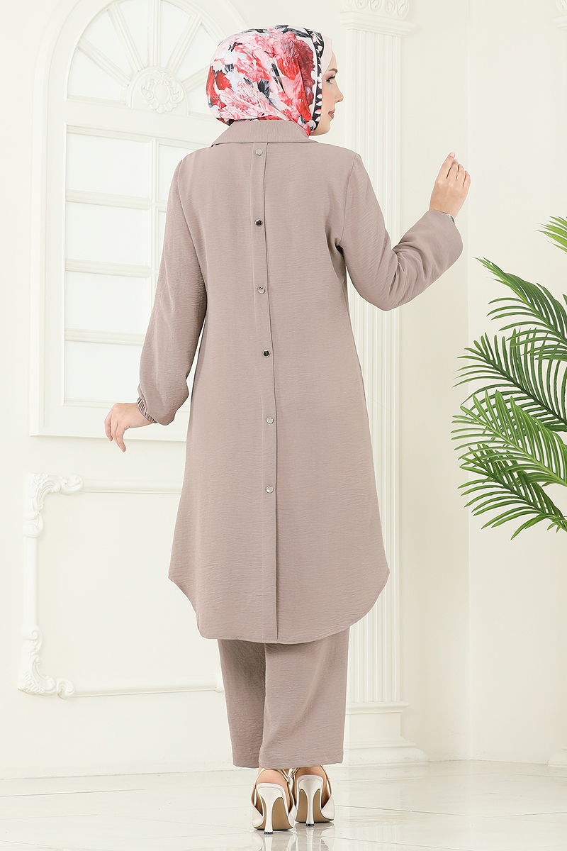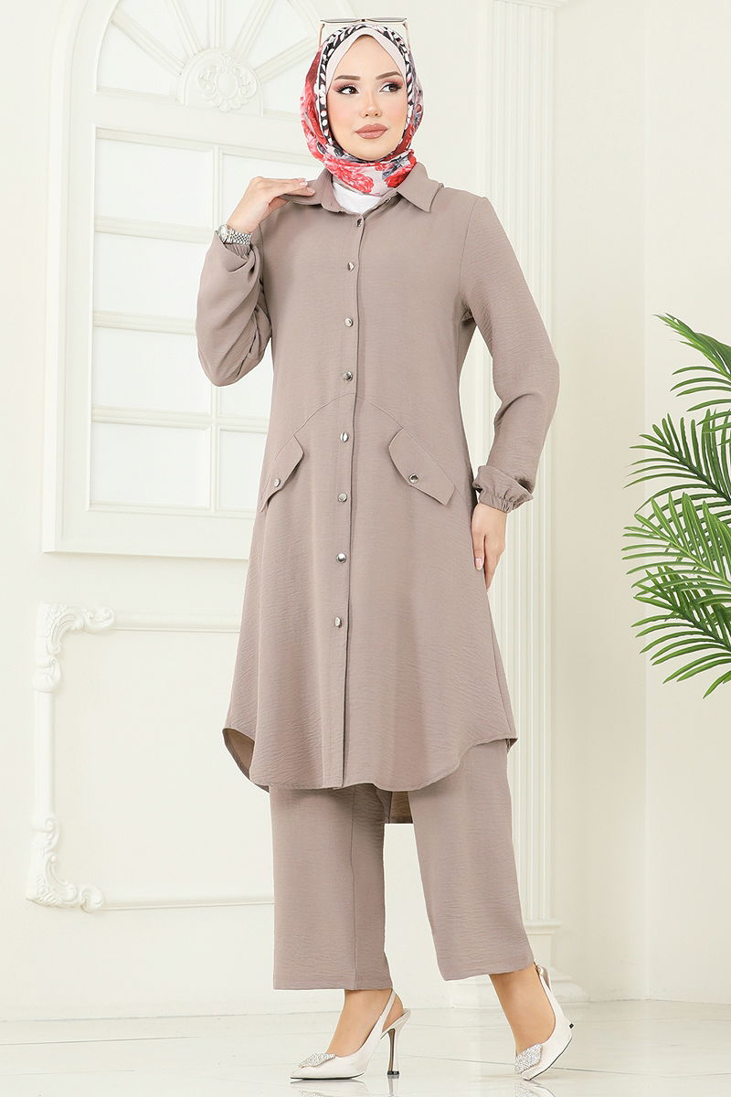 Ürün Özelliği : Yeni sezon tesettür moda ürünüdür. İç tunik Sırttan kullanılabilir bir düğmesi bulunmaktadır. Ürün Gömlek yakadır. Ürün Önden düğmelidir. Yırtmaç düğmeleri aksesuardır.. Astarsızdır. Desen detayları baskıdır. İç tunik uzun kolludur. Cep detayı aksesuardır. Pantolon beli lastiklidir. Manşet lastiklidir. Konsept fotoğraf çekimlerinden dolayı üründe ton farklılığı olabilir.