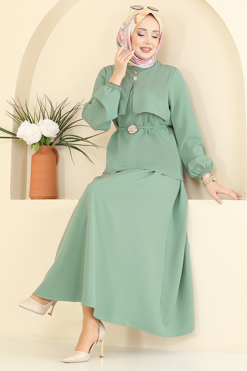 Aksesuar Detaylı 2 li Etekli Takım 2839SLK540 Su Yeşili