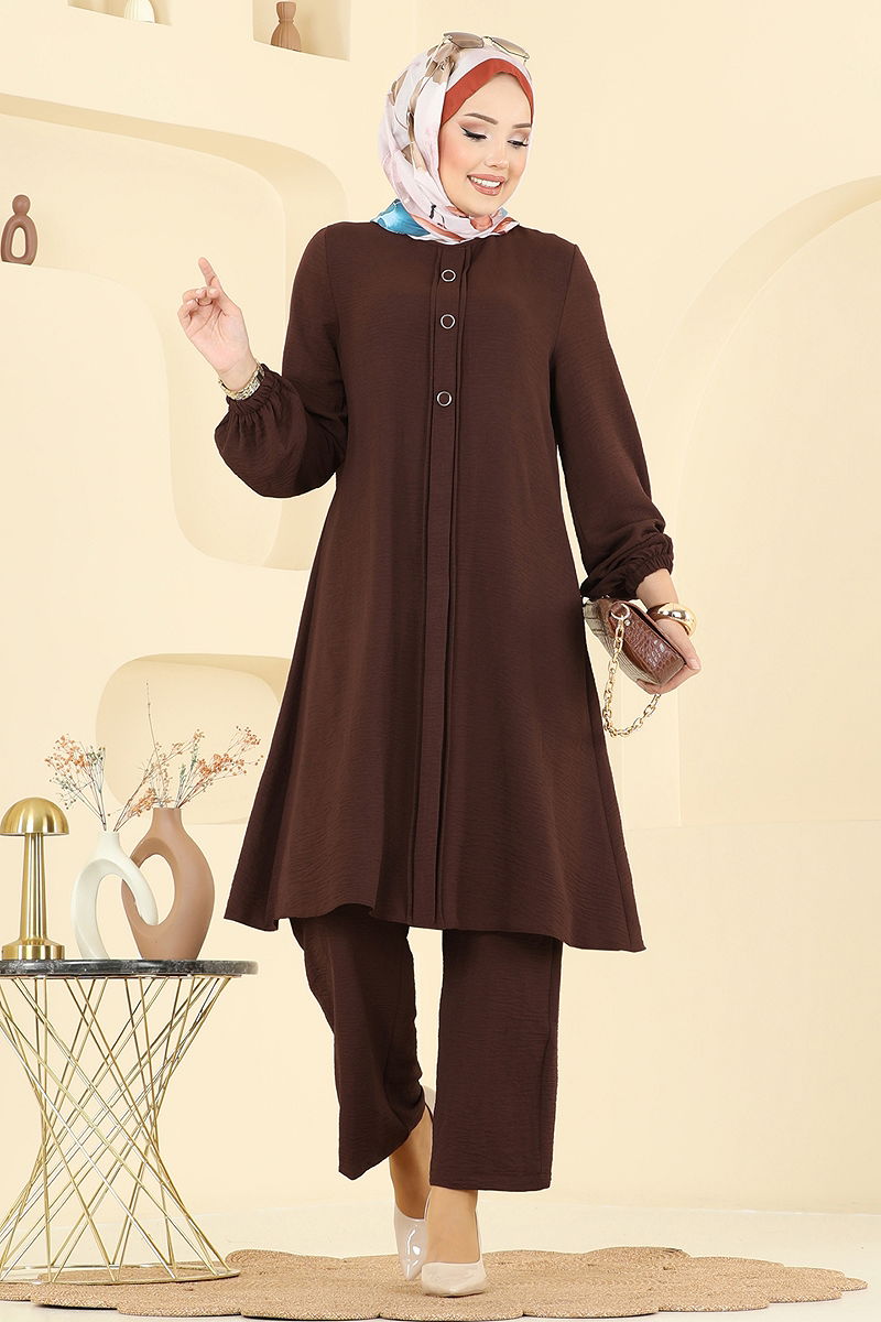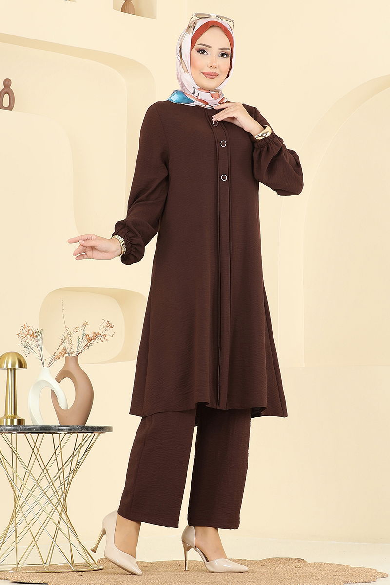 Aksesuar Düğmeli Aerobin Takım 2621SL432 Kahve