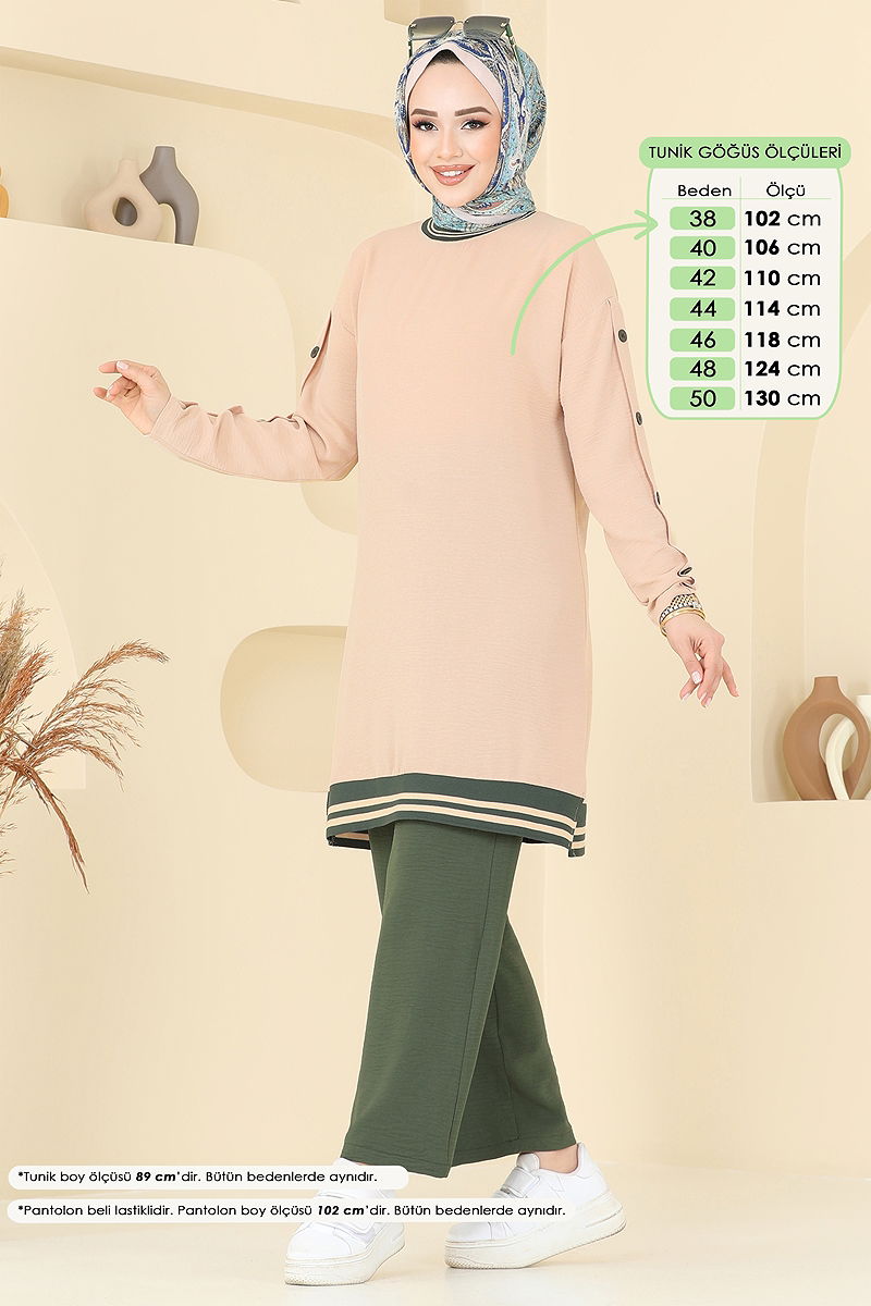 Aksesuar Düğmeli Aerobin Takım Vizyon&Haki