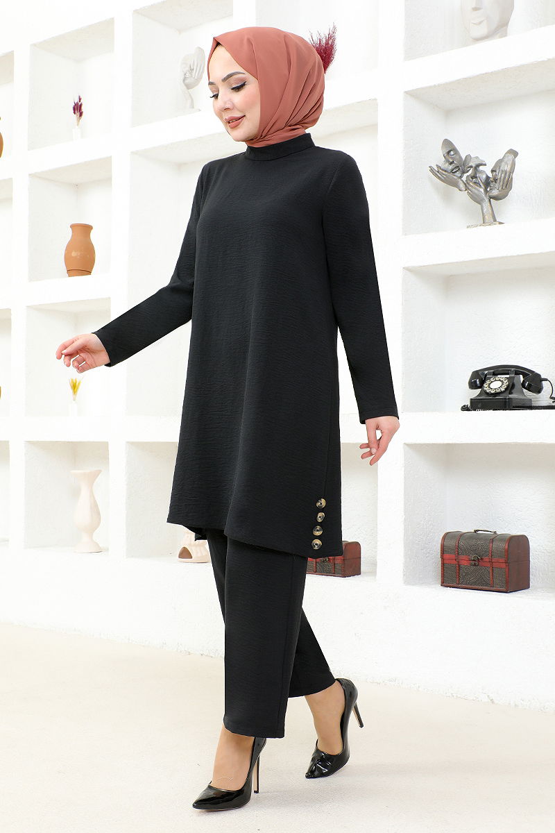 ميزةالمنتج:إنه منتج أزياء حجاب للموسم الجديد. (إنه غير مبطن.) إنه طوق دراجة. يتم ارتداء المنتج من الرأس. الأزرار إكسسوارات. خصر البنطلون مطاطي. قد يكون هناك اختلاف لوني في لون المنتج بسبب اللقطات التصورية.