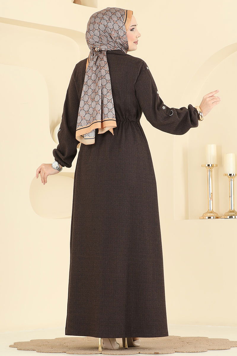 Aksesuar Düğmeli Balıksırtı Ferace 24013UKB139 Koyu Kahve