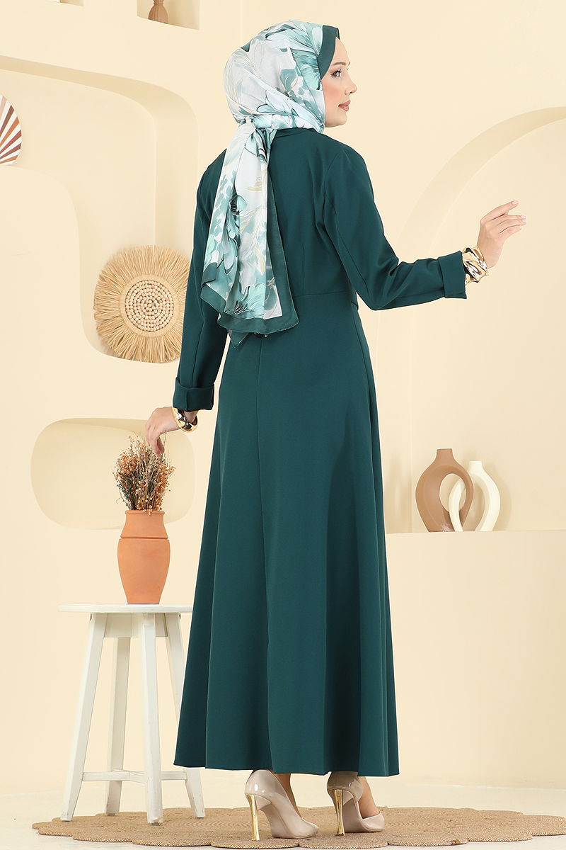 Aksesuar Düğmeli Dabıl Elbise Petrol