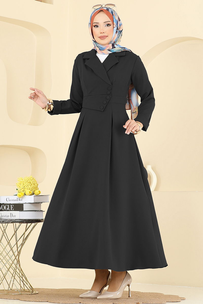 With its modern and stylish design, the Buttoned Dabil Dress brings a new breath to hijab fashion. This dress, which can be comfortably worn in all four seasons, can be cleaned at 30 degrees with delicate wash. Its crossover neckline design and unlined structure prioritize comfort, while the side zipper facilitates easy dressing. The quality of the woven Dabil fabric and the chic detailing of the buttons maintain your elegance in every setting.