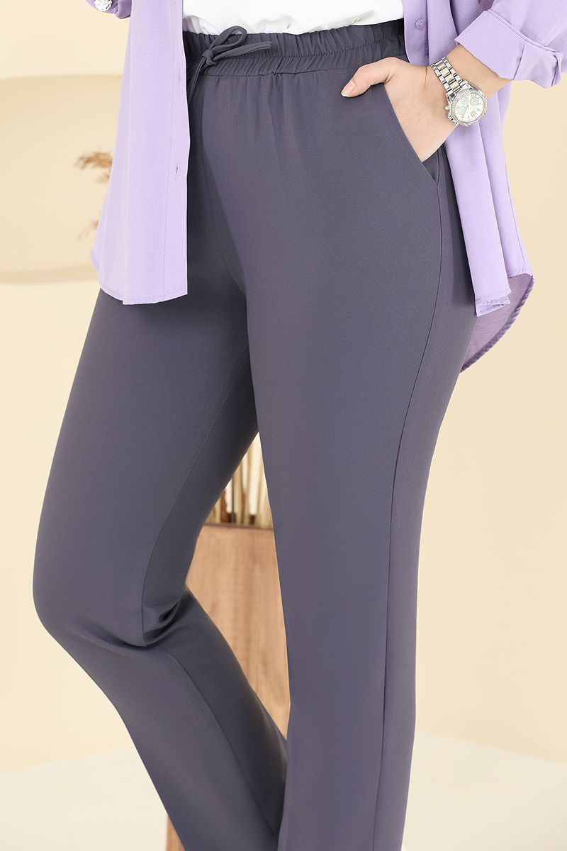 The Accessorized Buttoned Dabıl Trousers is a stylish and practical veil pants model that can be worn comfortably in any season. Made from soft Dabıl fabric and unlined for comfort, it offers easy care with its machine washable at 30 degrees gentle cycle. The elastic waist and pockets provide practicality, while the tie and button details add a stylish touch. The product shown on the model is size 38.