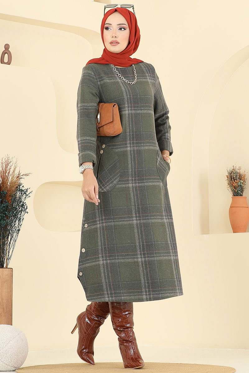 Aksesuar Düğmeli Ekose Tunik 6899S324 Haki