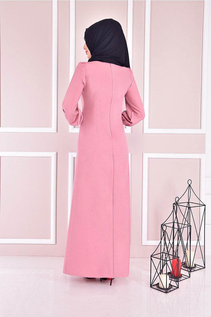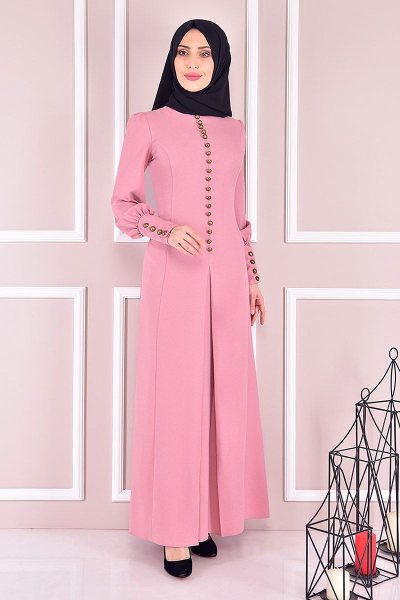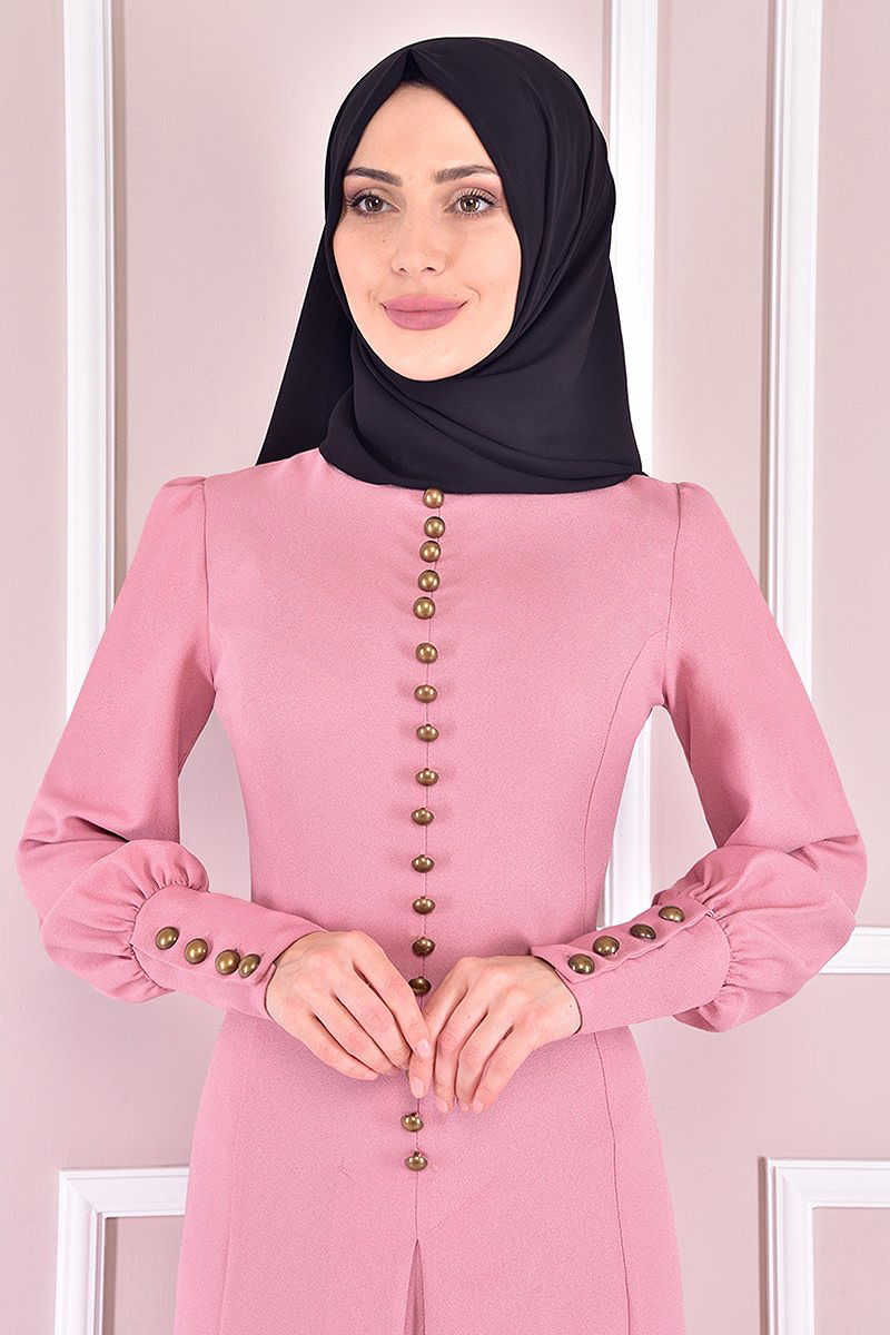 Aksesuar Düğmeli Elbise ASM21510-M Pudra