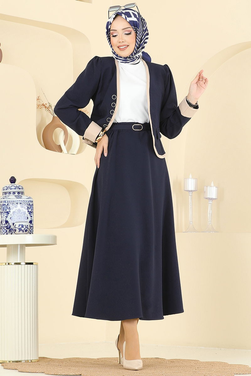 Aksesuar Düğmeli Etekli Takım Laci