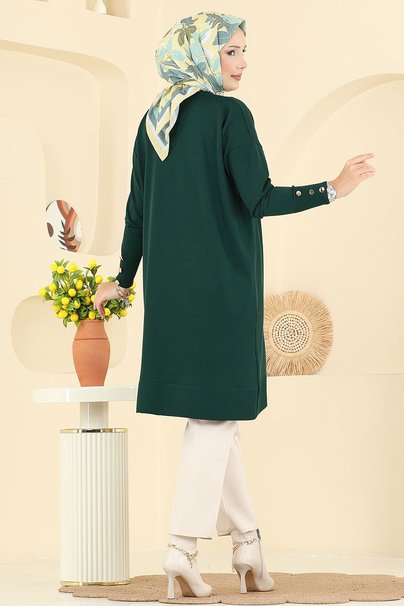 Aksesuar Düğmeli Merserize Tunik Zümrüt
