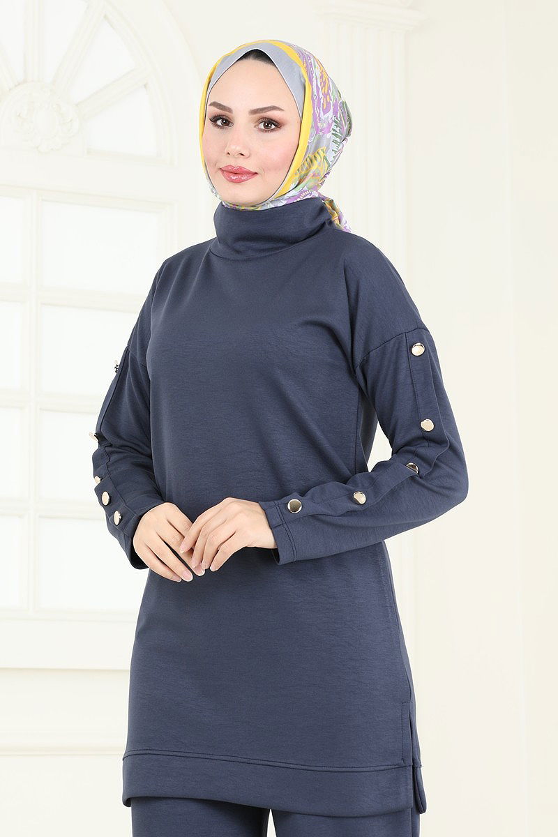 Product Feature : It is a new season hijab fashion product. The product has a Throat collar. The tunic has a side slash.. Unlined. Buttons are accessories. The waist of the trousers is elastic. There may be a tonal difference in the product due to concept photo shoots.
