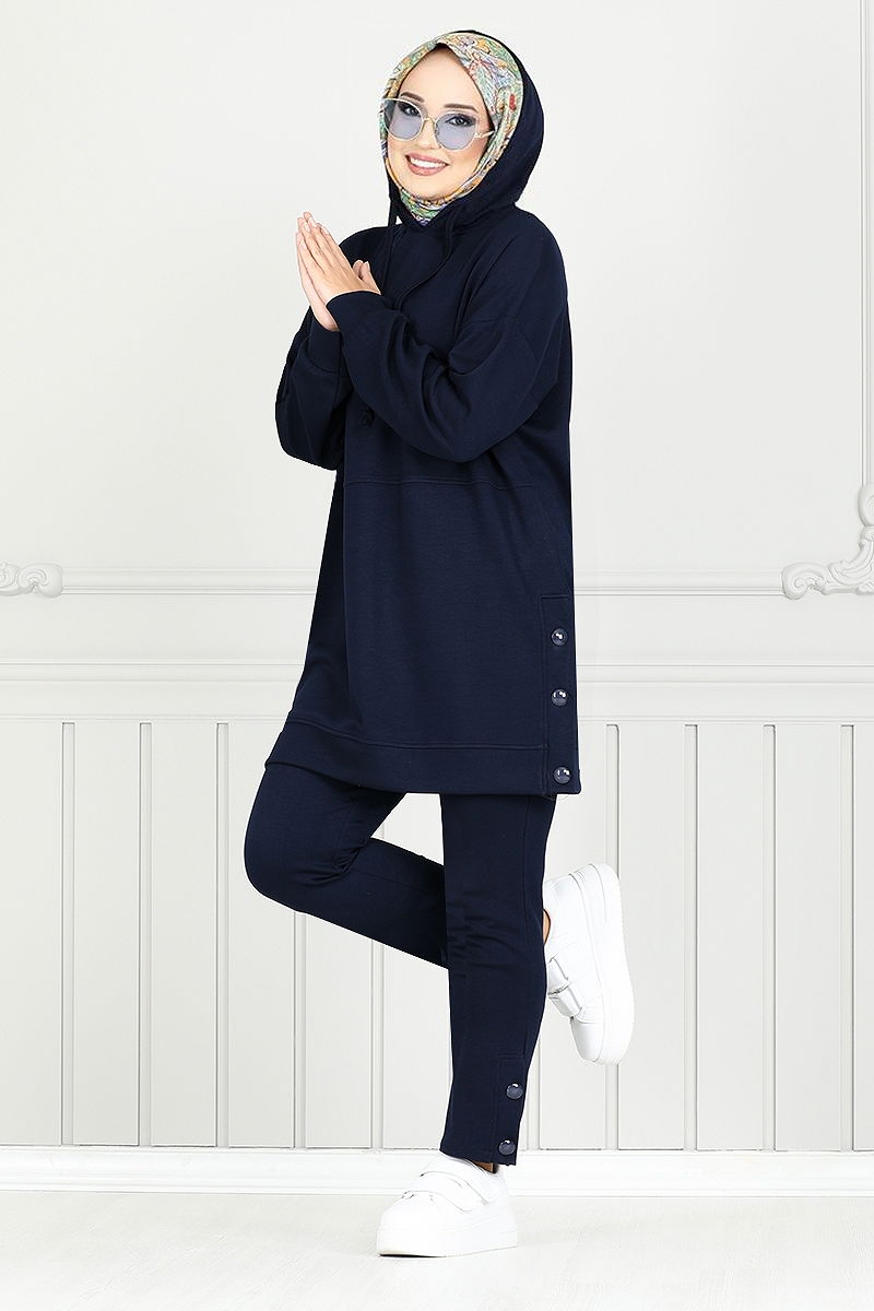 Aksesuar Düğmeli Oyso Takım model tesettür ürünüdür.Sonbahar ve Kış sezonunda kullanılabilir.30 derecede sıkma yapılmadan yıkanmalıdır.Birinci sınıf Oyso kumaştan imal edilmiştir.Ürün Kapşonlu yakadır.Yırtmaç düğmeleri aktiftir..Astarsızdır..(Modelin üzerindeki ürün S bedendir.)Kapşon ürüne dikilidir.Pantolon beli lastiklidir.
