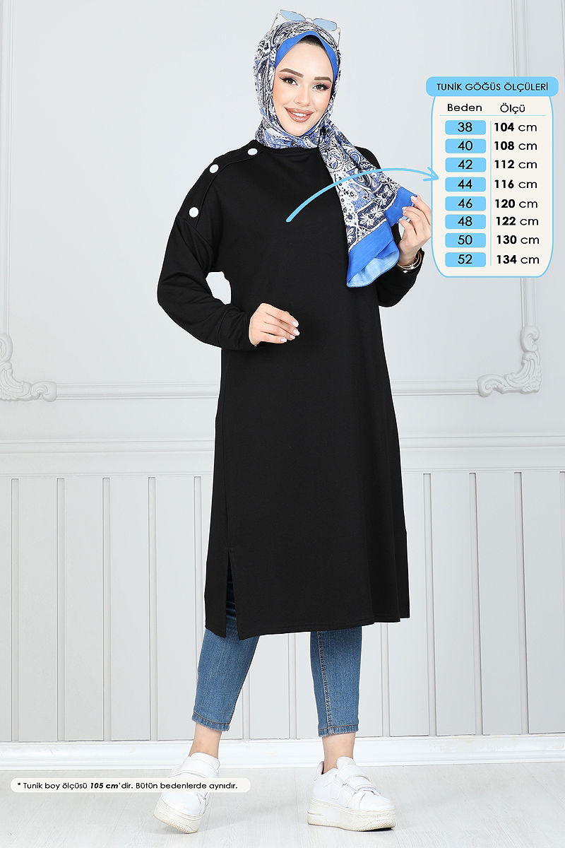 Aksesuar Düğmeli Tesettür Tunik 2695AYD574 Siyah