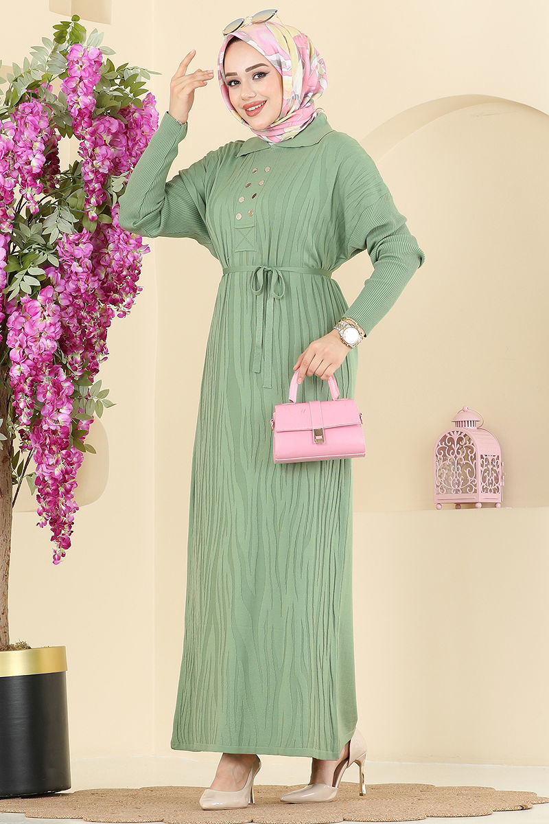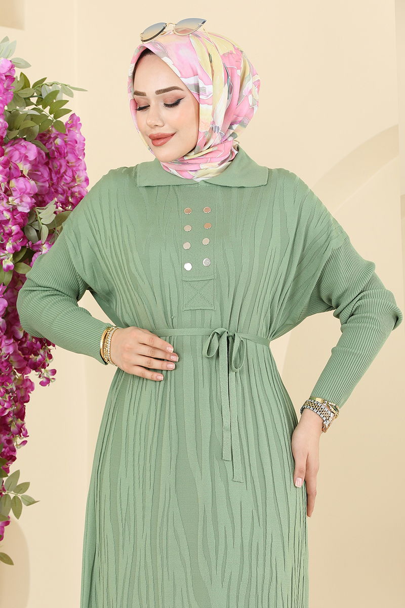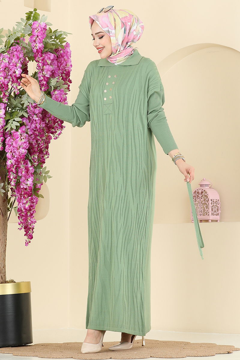 Aksesuar Düğmeli Triko Elbise 211440TPK1167 Çağla